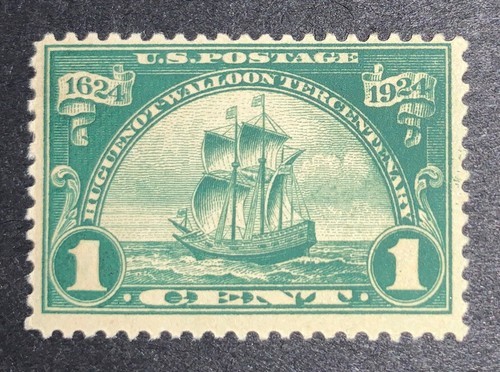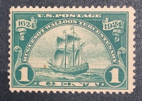 1924 1c Ship "Nieu Nederland", Walloon, Dark Green Scott 614 Mint F/VF NH