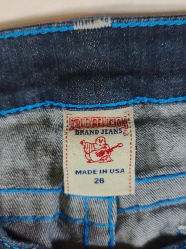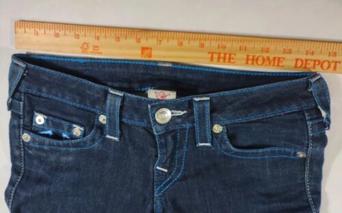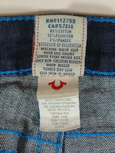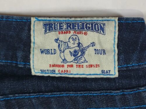True Religion Women's Capri labeled size 26. Measured 29x24. Dark Blue with light blue stitching. Please see other jeans in my store. Thanks for looking!