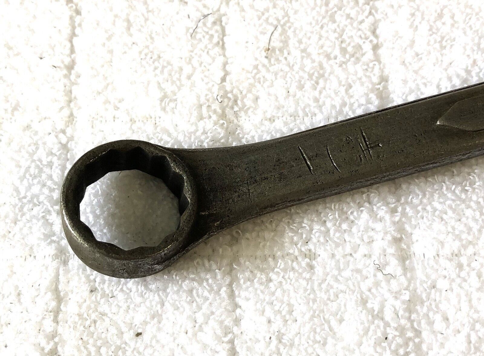 Well built wrench that is 11" long, has good points both ends and does have previous owner marks.