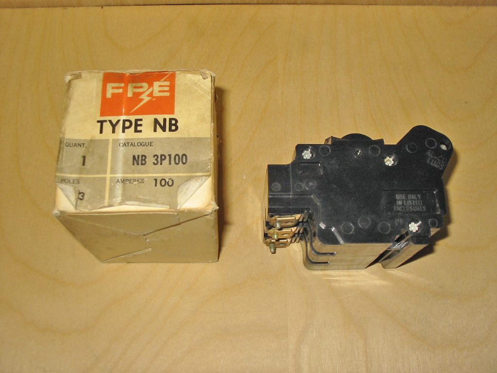 Up for sale is a 'NEW in BOX' FPE 'TYPE NB' 100 AMP, 3 POLE, 240 VAC CIRCUIT BREAKER (Cat No: FPE NB3P100, FPE NB3100, 10kA@240V, 40ยบC, CU/AL) ~ any questions/concerns please email me prior to item order checkout.