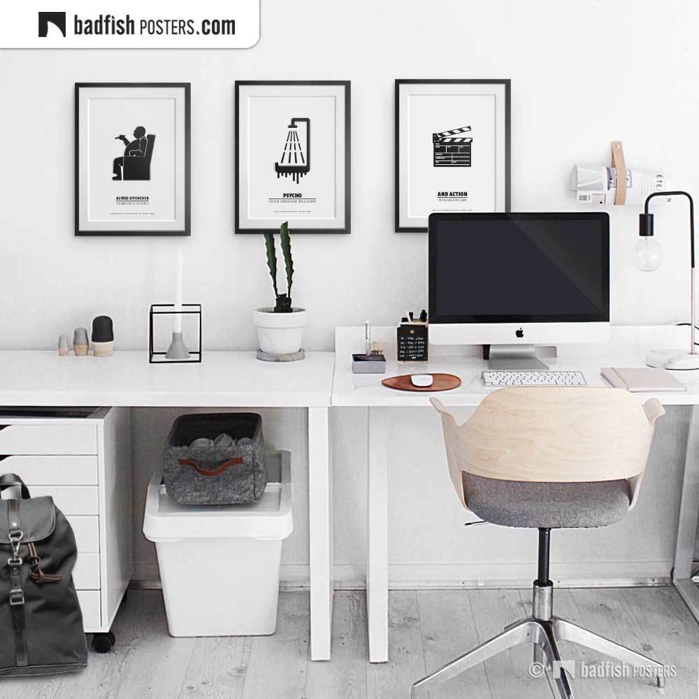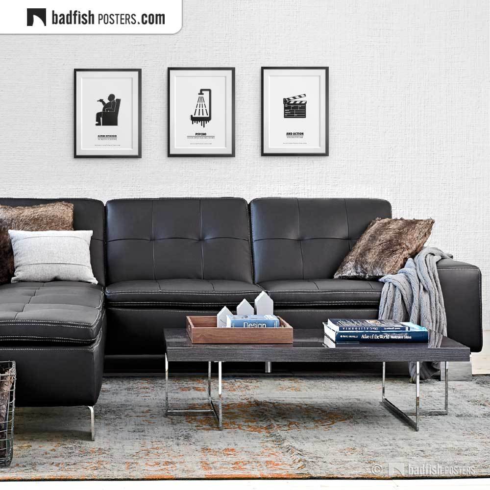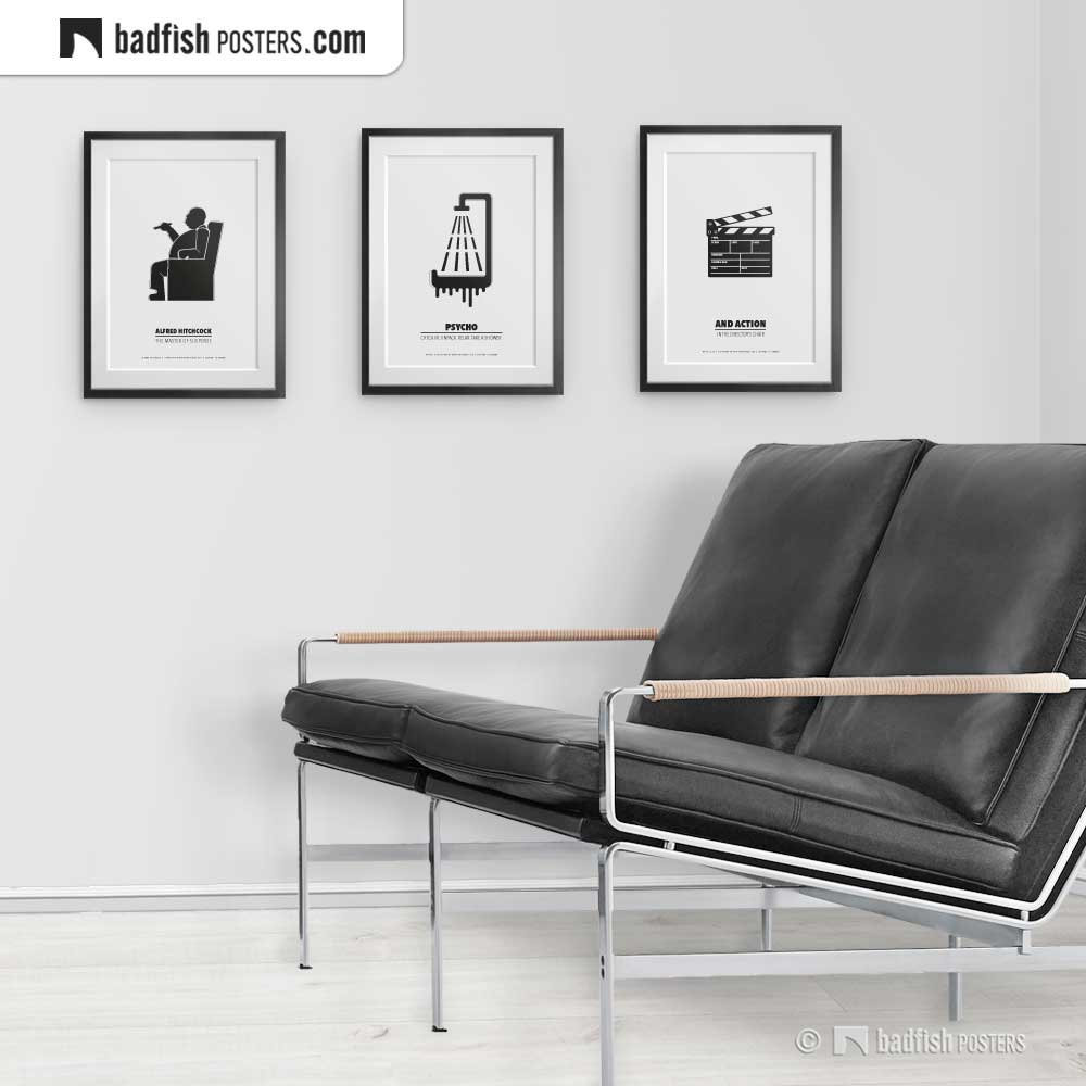 Cinephilia Collection: Set of 3 Movie Posters - ALFRED HITCHCOCK Poster - PSYCHO Poster - MOVIE CLAP Poster | Minimal Design B W Movie Posters | WORLDWIDE SHIPPING | Copyright BadFishPosters