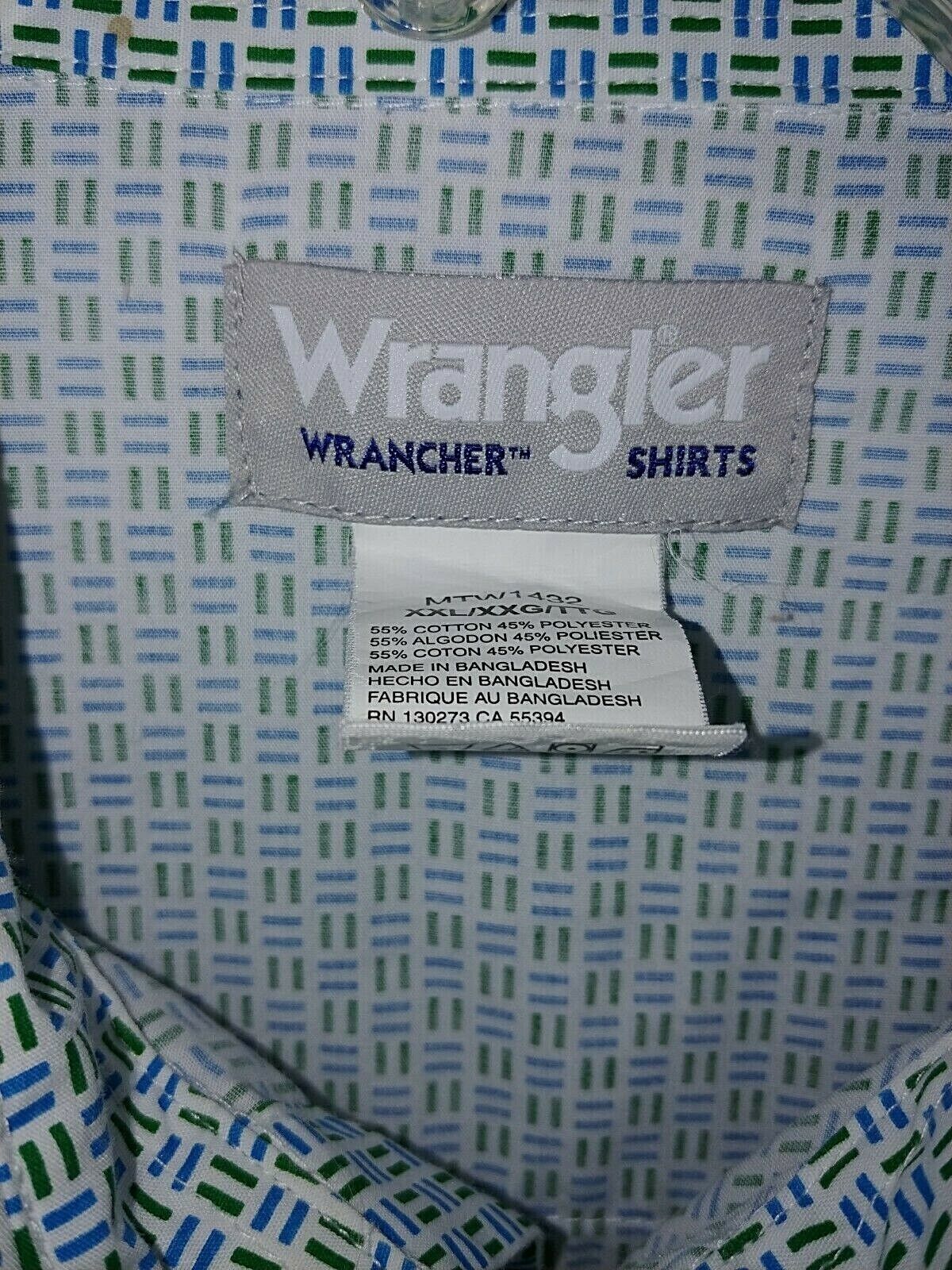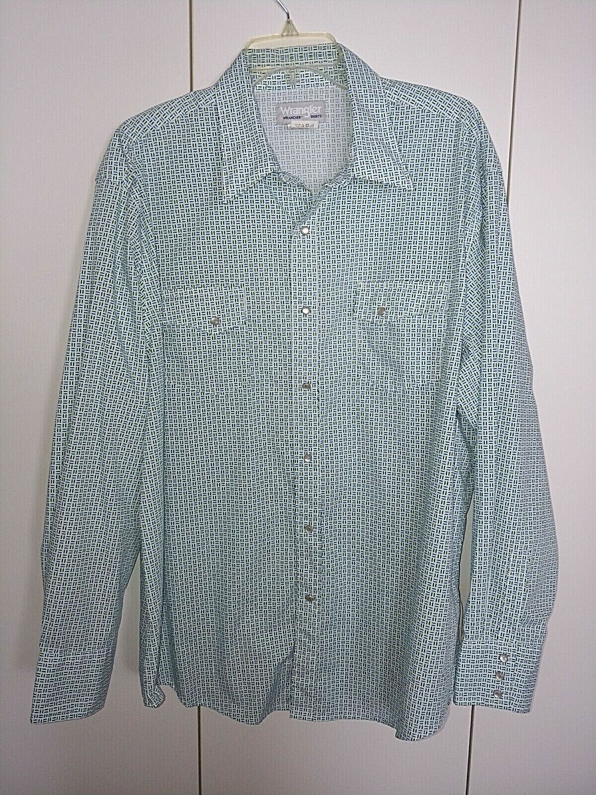 THIS IS A VERY NICE MEN'S WRANGLER LONG-SLEEVED SNAP SHIRT IN A SIZE XXL. IT IS IN EXCELLENT, LIKE-NEW, CONDITION--WORN/WASHED ONCE.