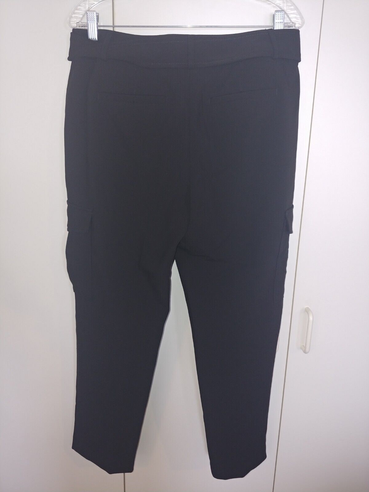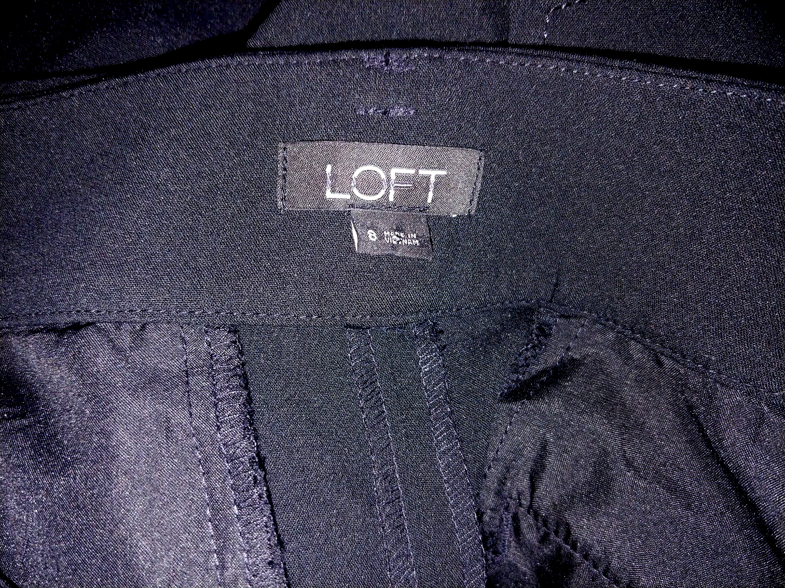 THIS IS A GREAT PAIR OF LADIES LOFT BLACK STRETCH DRESSY CARGO PANTS IN A SIZE 8. THEY ARE NEW BUT HAVE A LINE THROUGH INNER BRAND NAME TAG.