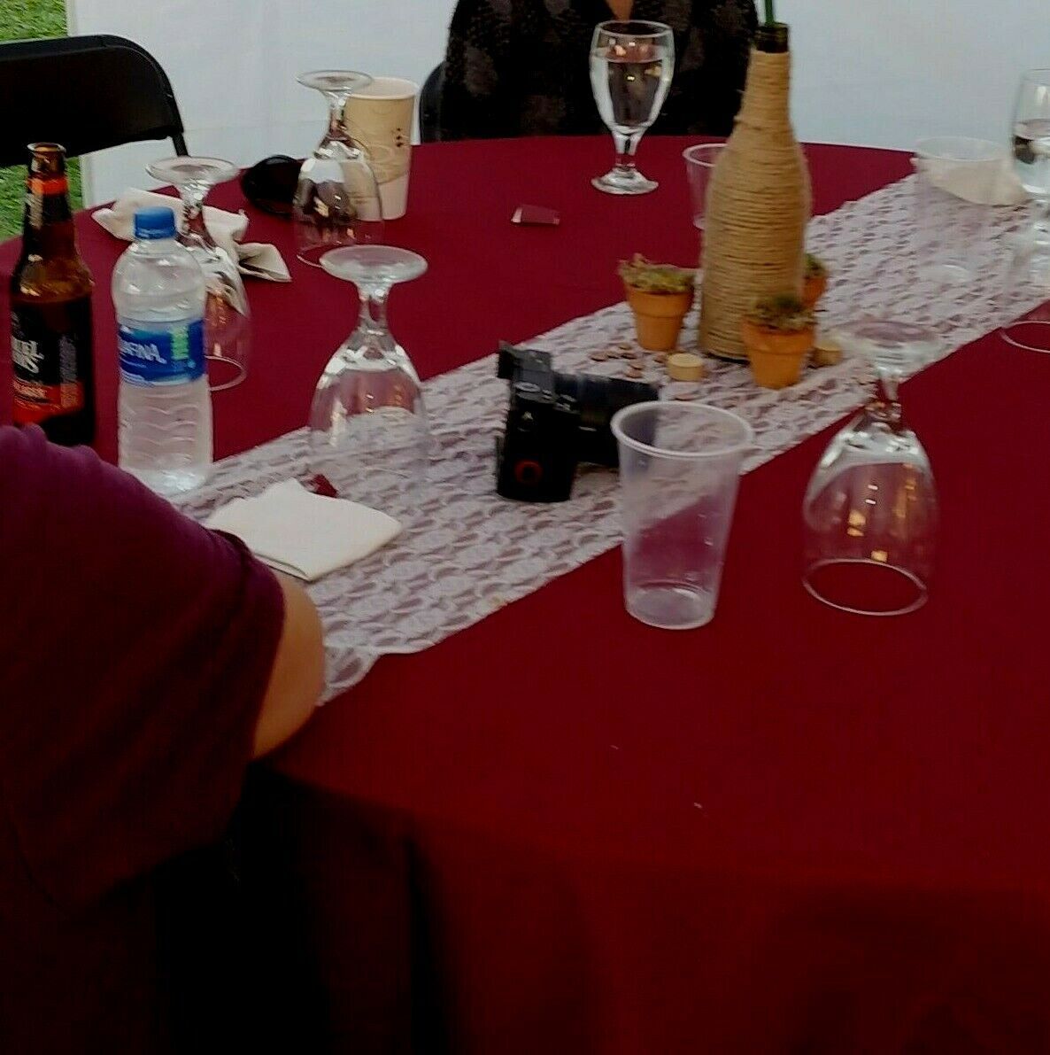 LANN'S LINENS 6 WINE POLY 120" ROUND WEDDING/OCCASION TABLECLOTHS-USED 1-NICE