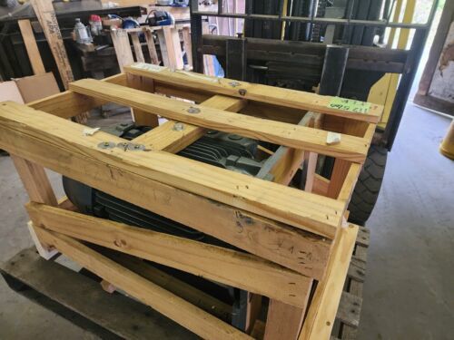 New motor from a now closed factory that kept spare parts for their equipment the box has a little damage from sitting on the floor, but the motor is in new condition