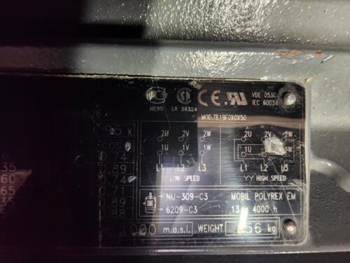 WEG W22 Electric Motor 400/440 Volt 160L-4/2 Fr 1765/3535 rpm. 19/4.5 KW 25/6 HP