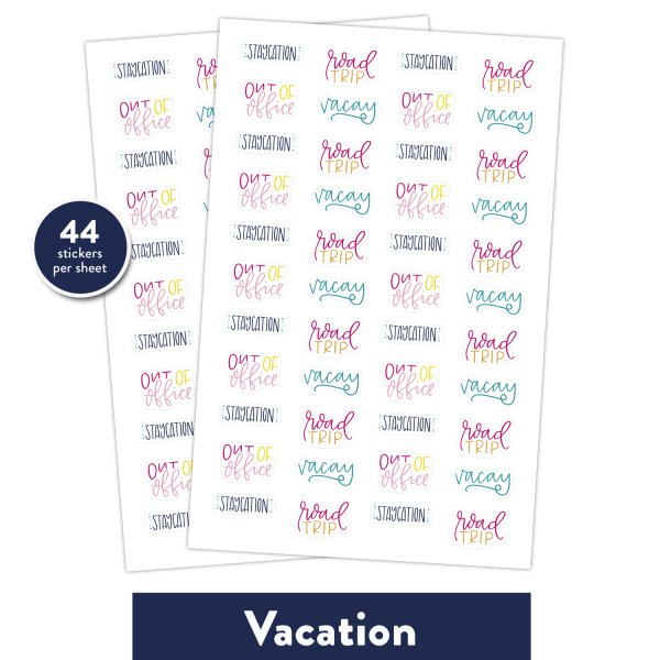 Includes 2 sheets of each design: Vacation, Holiday and Phrases.