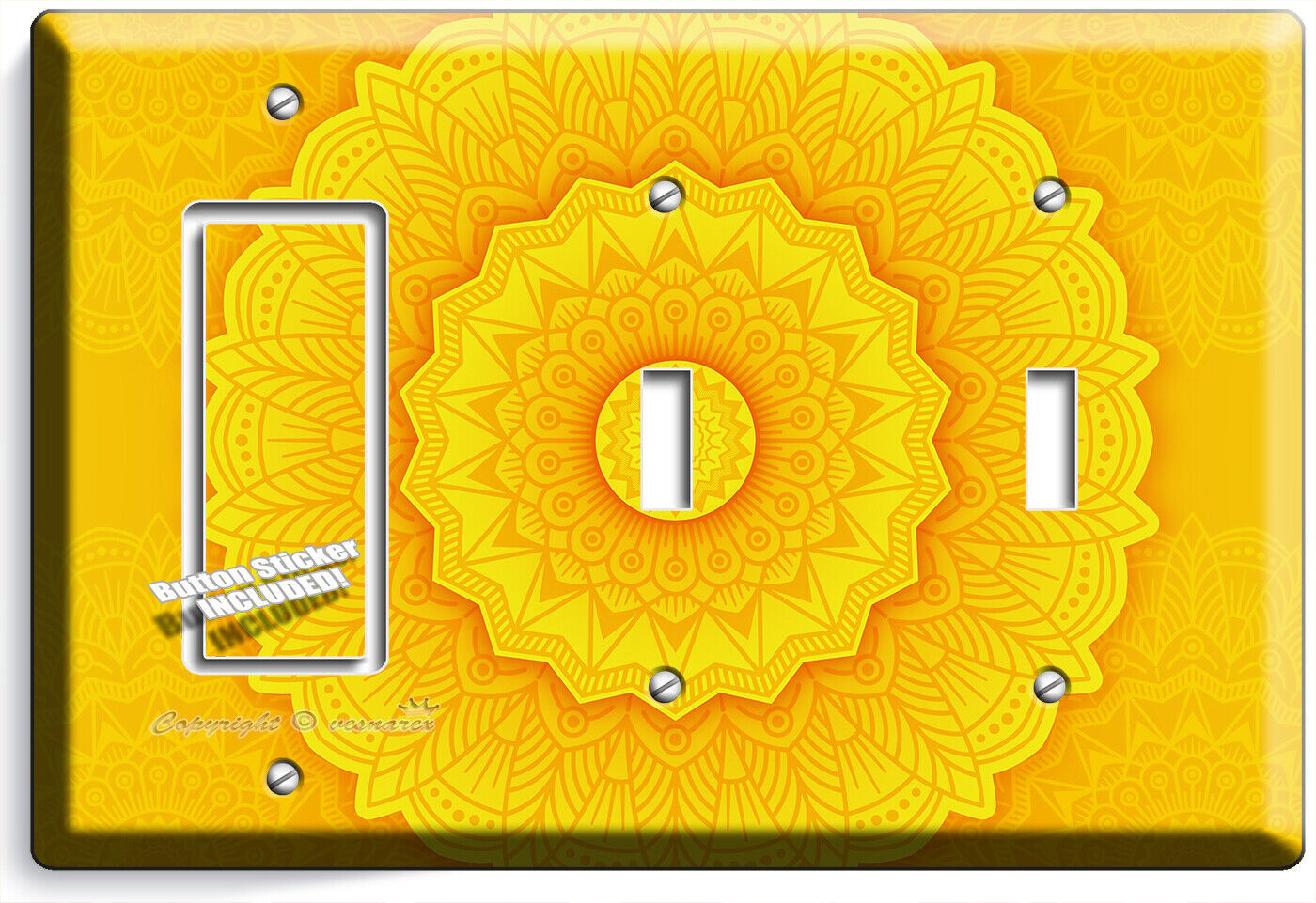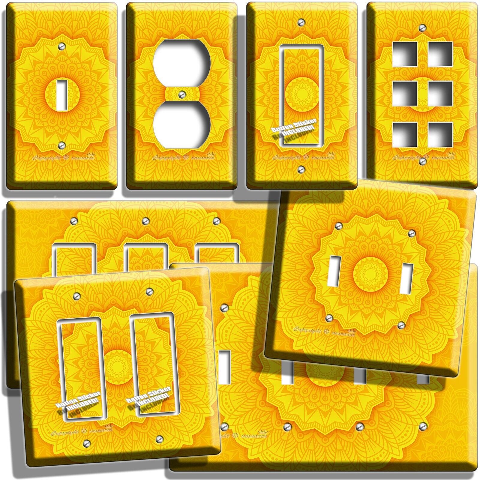YELLOW MANDALA BALANCE SERENITY LIGHT SWITCH OUTLET WALL PLATES YOGA ROOM DECOR