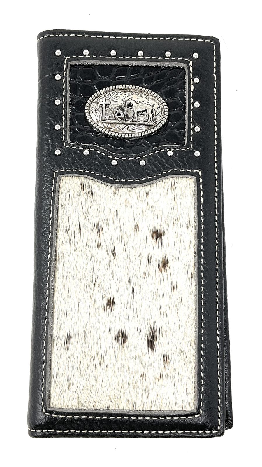 Western Men's Cow Fur Genuine Leather Basketweave Praying Cowboy Bifold Wallet i