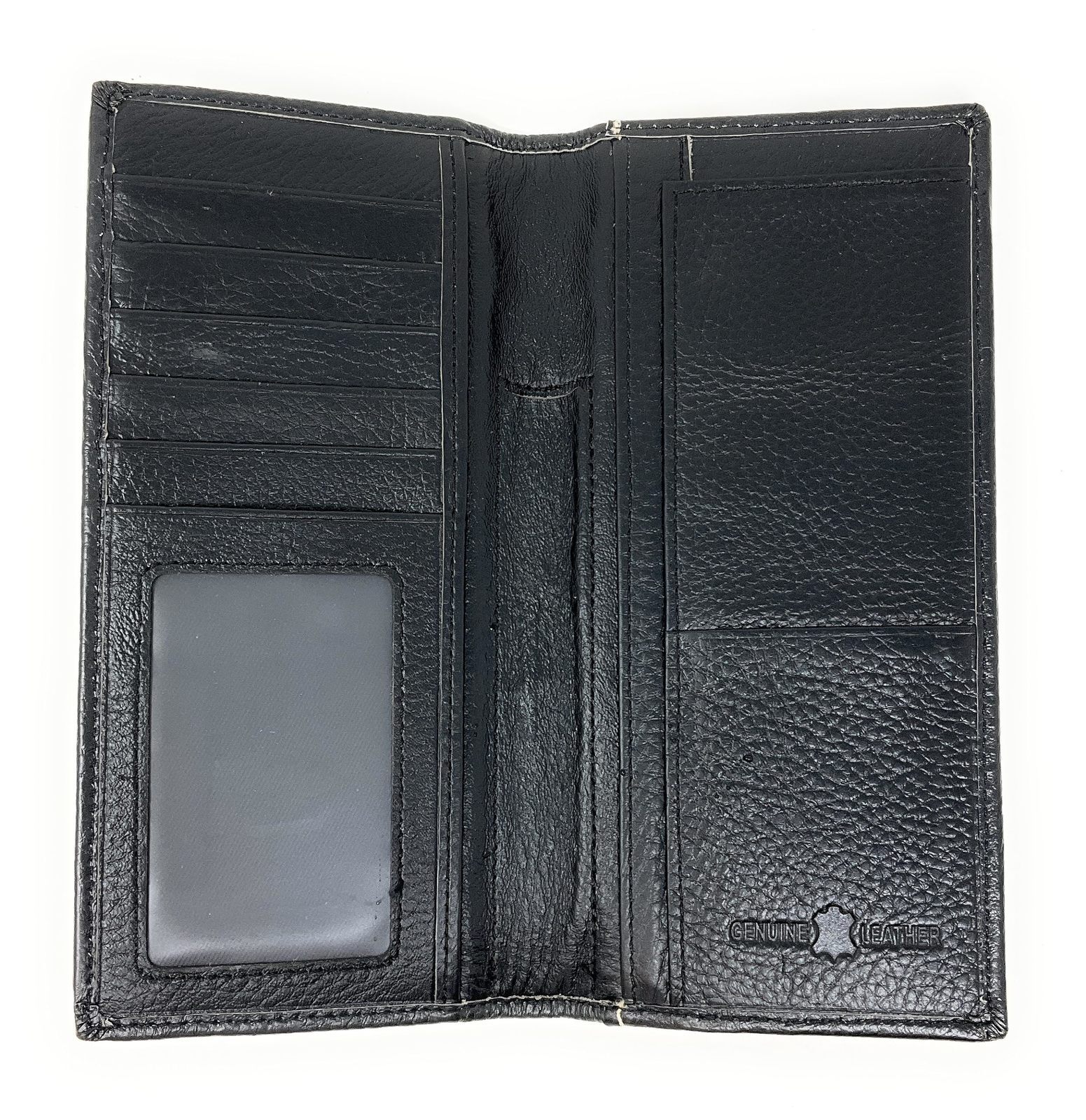 Western Men's Cow Fur Genuine Leather Basketweave Praying Cowboy Bifold Wallet in 2 Colors . Length 7" x Width 4.5" x depth 0.5". 13 credit card slots. 1 I.D slot. 4 cash check pockets, extra cards slots inside. Basketweave and tooled genuine leather on the front. An open pocket on the back. Durably well made.