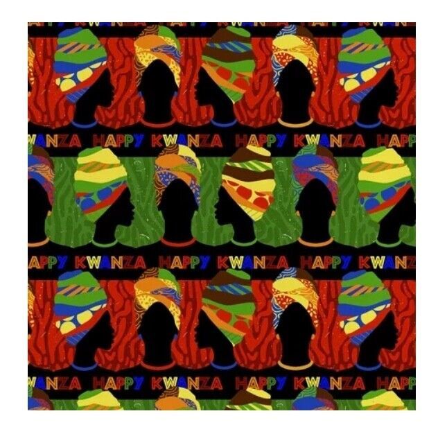 David Textiles Fabric, 1 Yard 36" X 44", 100% Cotton, Happy Kwanz |