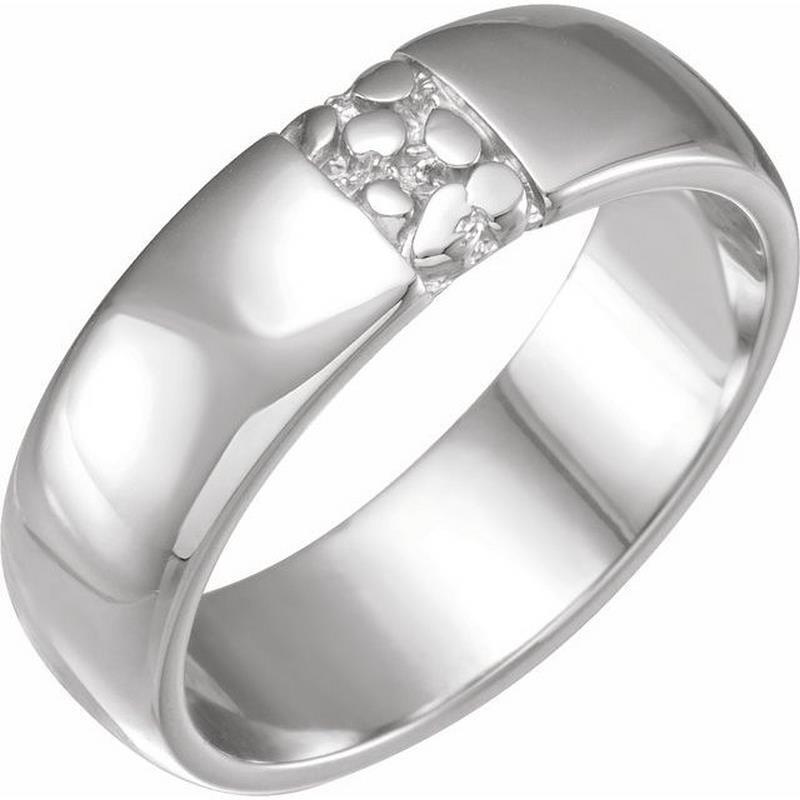This 6 mm wide continuum sterling silver band features a nugget pattern in the centre.