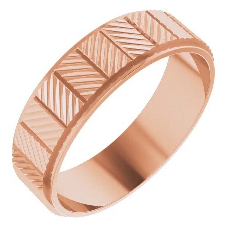 18k Rose Gold 6 MM Chevron Pattern Wedding Band