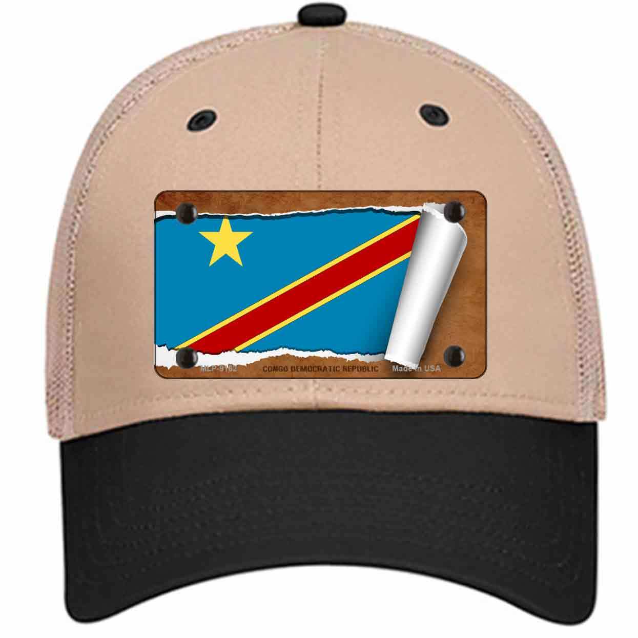 Congo Democratic Republic Flag Scroll Novelty Khaki Mesh License Plate Hat