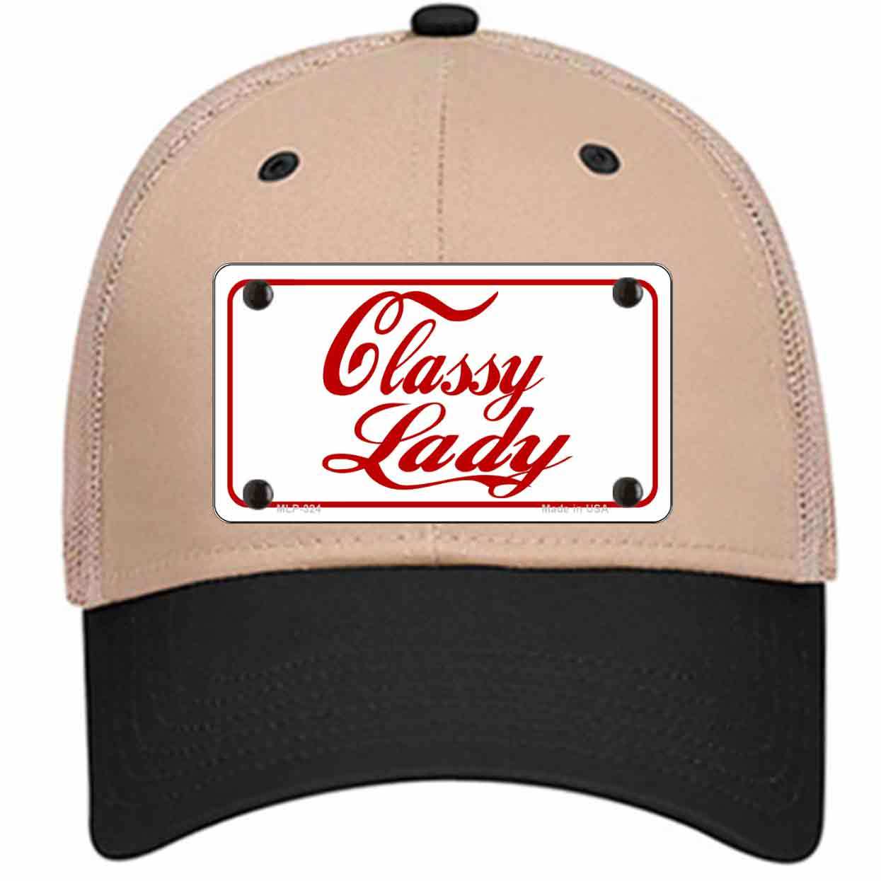 Classy Lady Novelty License Plate Hat. Show off your style with our mounted 4" x 2.2" metal patches on our 6 Panel SnapBack or Velcro Closer Hats. Choose between our different color and style caps. Our metal patches are made out of .025 grade aluminum and the designs are dye sublimated onto the metal to give a quality high gloss finish. Our metal patches are firmly attached using double cap rivets to give the patch an elegant tight fitting look!