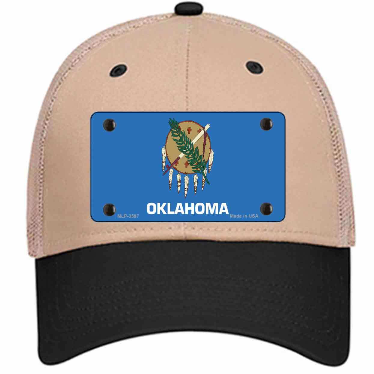 Oklahoma State Flag Novelty Khaki Mesh License Plate Hat