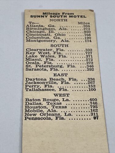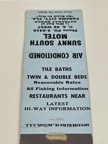 Front Strike Matchbook Cover Sunny South Motel Panama City, Fla gmg Unstruck