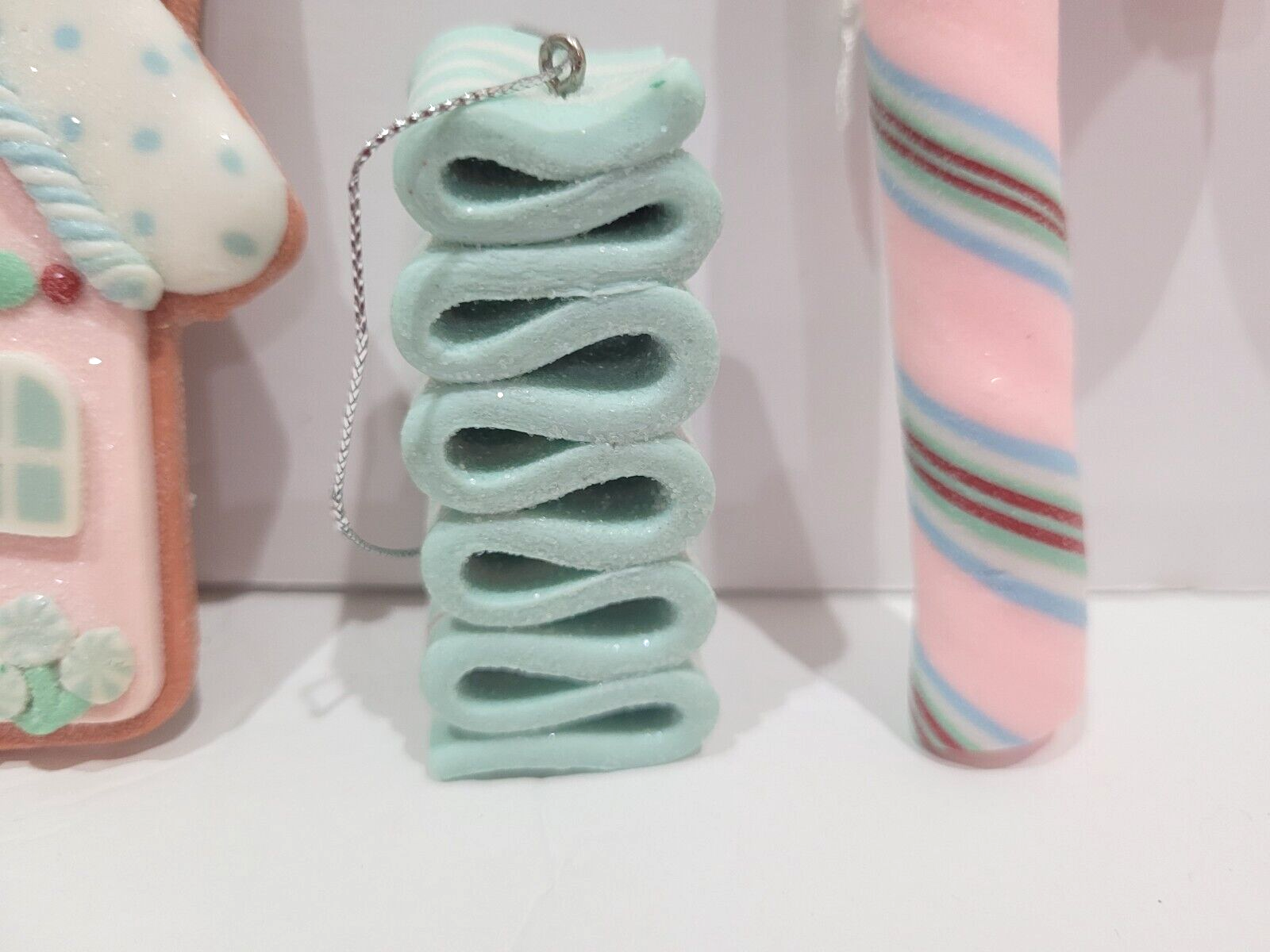 Christmas Pastel Gingerbread House Candy Cane Cookie Candy Ornaments Set of 3