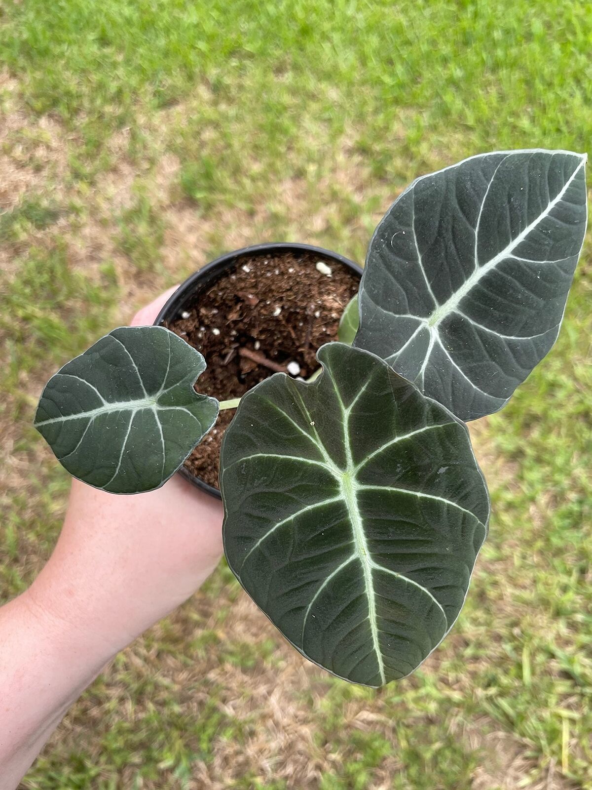 Alocasia Black Velvet, Jewel Alocasia in a 4 inch pot [GROWN AND PLANTED IN THE USA] Bringing the quality and price of local nurseries to you. [PRODUCT DETAILS] You will receive plant(s) similar to the listing photos. All plants come potted with soil in a plastic pot. A general plant care tip guide will be given with every order. Keep in mind that fallen, dried, and yellowing of leaves are a natural occurrence. We try to contain the soil as much as possible within the packaging, but some soil may find its way out of the pot and onto the plant. If plants have soil over the leaves, it can easily be rinsed off with water. If plant is slightly wilted and the soil is dry, we recommend that you give the plant a watering as soon as you can to revive the plant. [WE WANT EVERYONE TO BE HAPPY] Feel free to message us if you have any questions. We want everyone to be happy with their purchase and will work with you on finding a resolution for all issues as soon as possible. [ADDITIONAL GUIDES] REPOTTING OR TRANSPLANTING YOUR PLANT - Try to avoid touching the roots as much as possible when repotting. It's not necessary to remove all the old soil. This step is important in determining how long it will take for your plant to settle in its new pot. - Once transplanted in new soil, do not water for 2-3 days. During this time, the plant might wither a little, but is necessary in the establishment and growth of roots in the new potting container. - While the plant gets adjusted to its new pot, do not place under direct sunlight. Keep it in a bright shady spot where it can avoid sunburn.