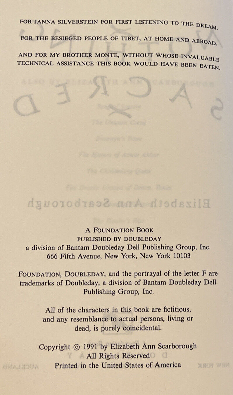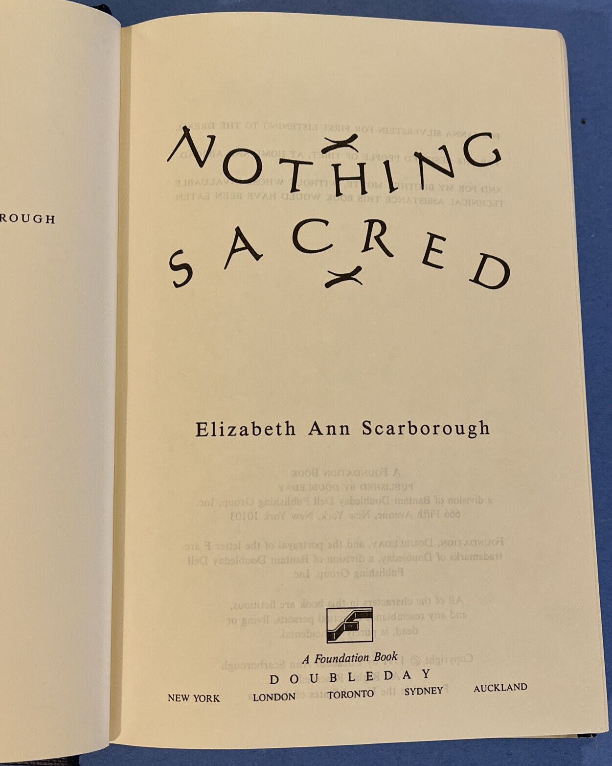 Elizabeth Ann Scarborough / Nothing Sacred 1st Edition 1991.
