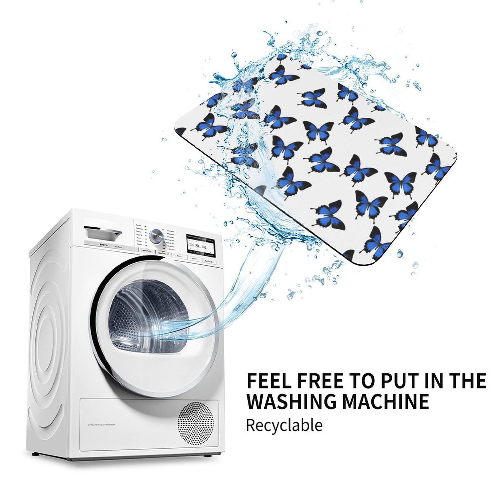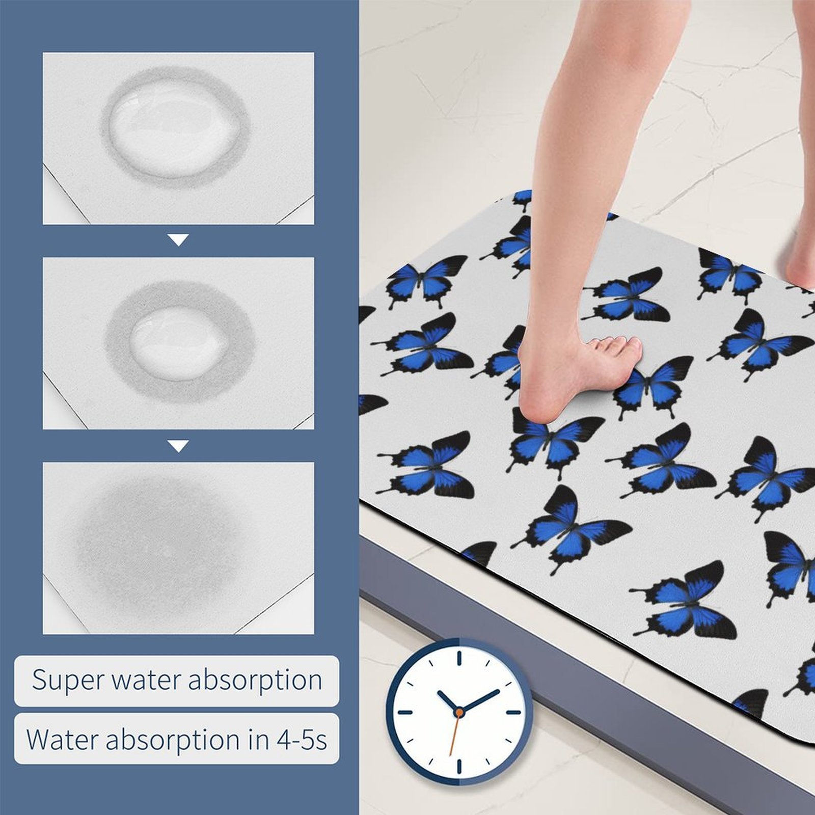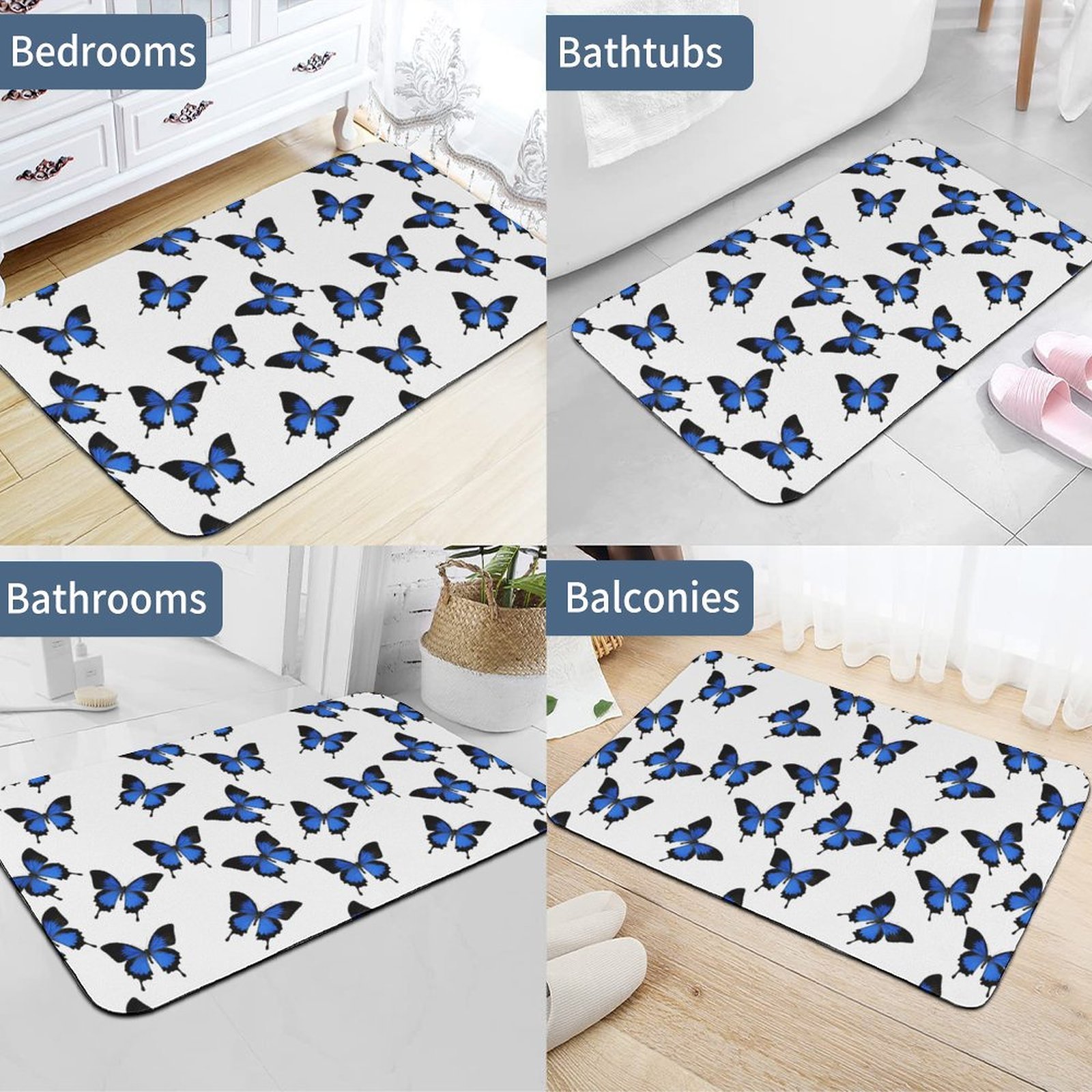 Classic Blue Butterfly Absorbent Kitchen Rug Bathroom Floor Mat For Bathtub Home House Cars Gym Office