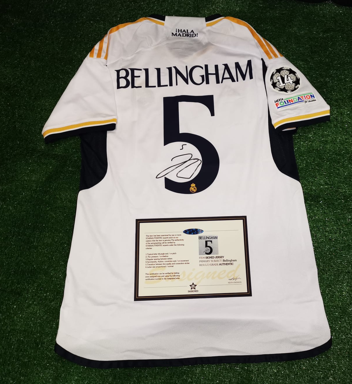 -A must for a fan or collector as this shirt represents Bellingham's remarkable first season for Real Madrid scoring 13 goals in 13 games! Some stats showing him exceeding what Ronaldo did when he was first at Madrid! A MUST HAVE JERSEY WHICH WILL BECOME MORE WANTED AND MEMORABLE AFTER THE YEARS GO BY!