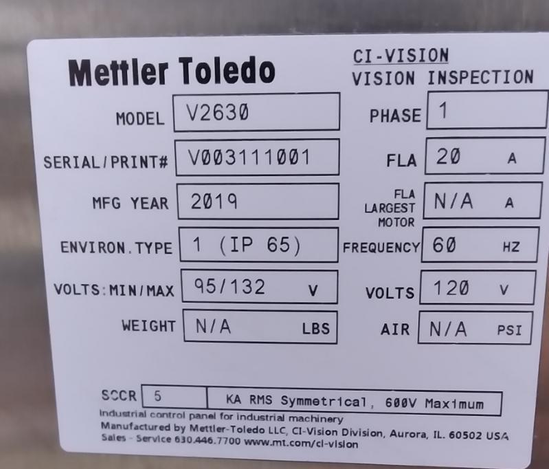 Metler Toledo V2630 CI-Vision Inspection and 16 similar items