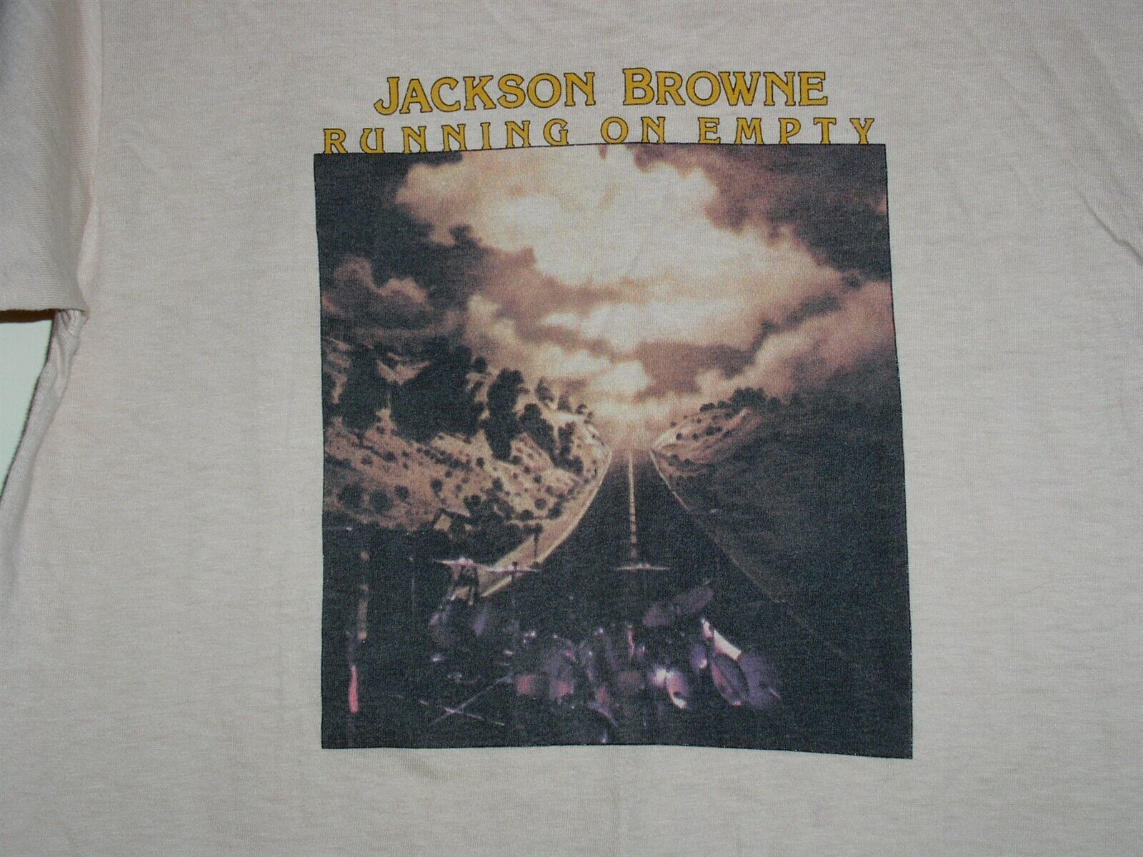 This is a vintage concert tour t shirt entitled, "Jackson Browne, Running On Empty". Dated 1978 Pacific Alliance San Luis Obispo. Linda Ronstadt photo pictured on the back. This is not an iron-on transfer. Tag reads: Hanes Beefy-T Made in U.S.A. Shirt is single-stitched to establish its vintage. Color is beige. A terrific item for the fan or collector.
