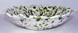 Vintage Art Pottery Green Flecked Leaf Shape Bowl