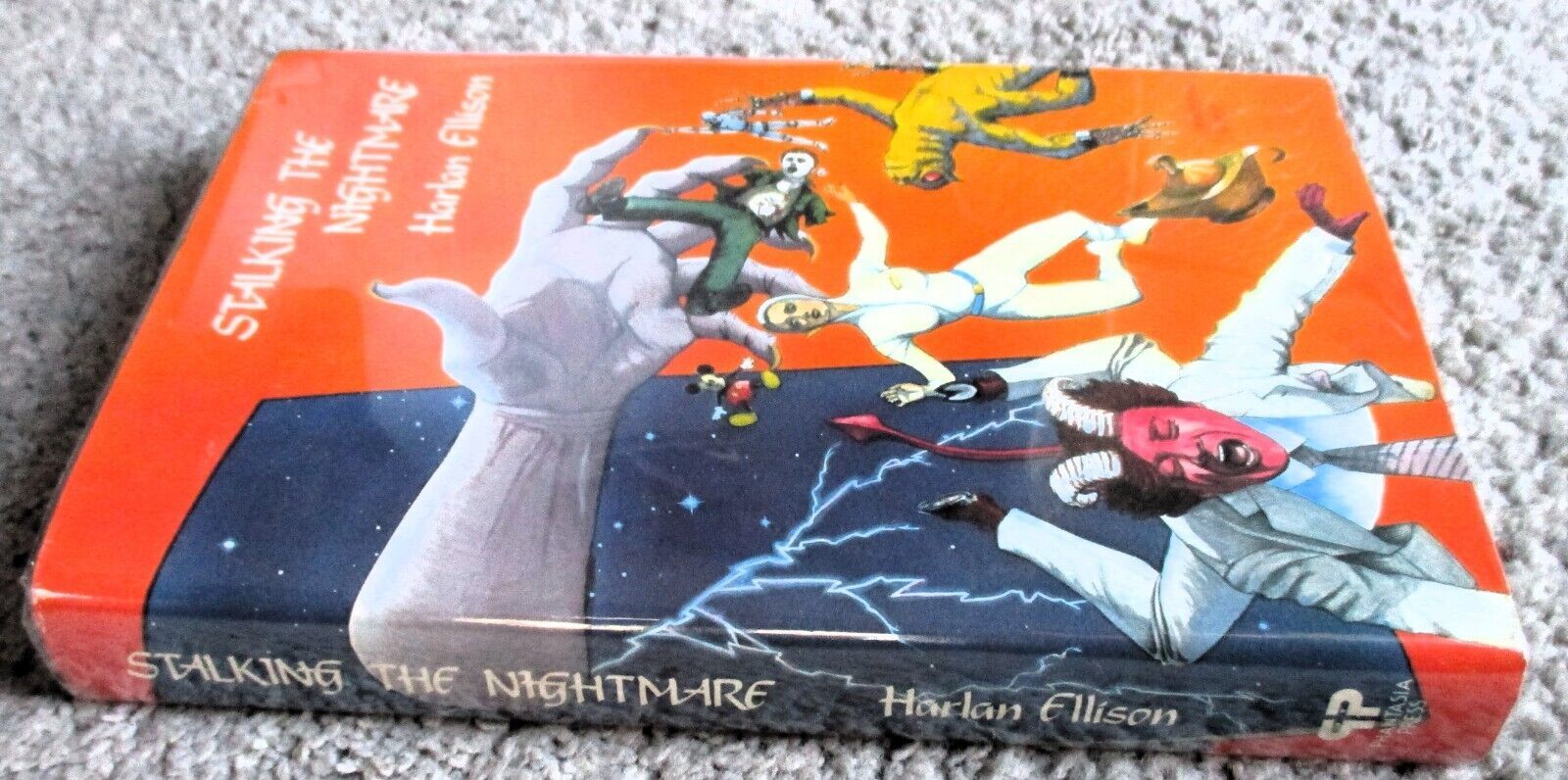 6.25" x 9.25", 332 page hardcover with dustjacket titled STALKING THE NIGHTMARE by Harlan Ellison/ Phantasia Press, ISBN # 0-932096-16-6, First Edition, Copyright 1982/ Stalking the Nightmare is a 1982 collection of short stories and nonfiction pieces by American writer Harlan Ellison. The short stories are interspersed with "Scenes from the Real World" sections, which are essays on a variety of topics. Although most of the stories had not previously appeared in any of Ellison's books, four of them were taken from his out of print 1970 collection Over the Edge.