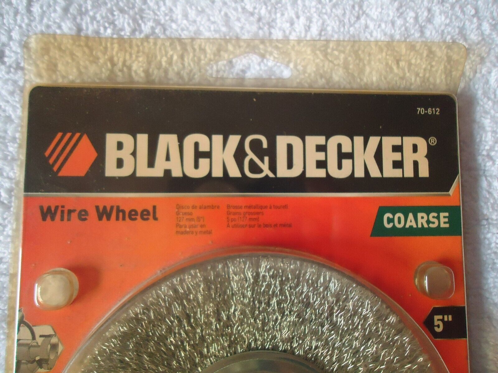 Here is a " NIP " Black Decker # 70-612 5" Coarse Wire Wheel For Metal Or Wood " Great Gift Item ".This is a must for anyone who uses these. If you have any concerns or questions about this item(s) please ask before bidding / purchasing because this item(s) is being SOLD AS IS.Thank You.-(PC2)
