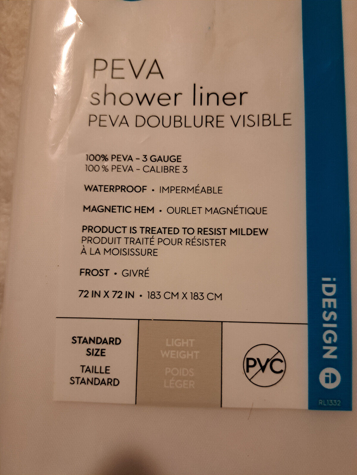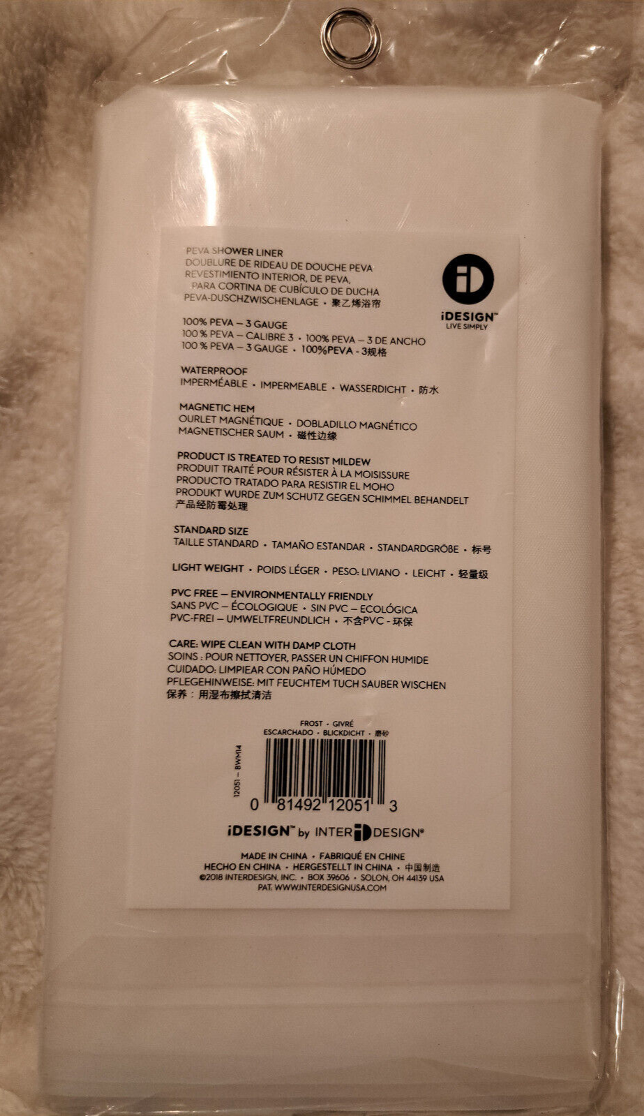 IDESIGN 72 In. X 72 In. Frost Peva Shower Curtain Liner Brand New
