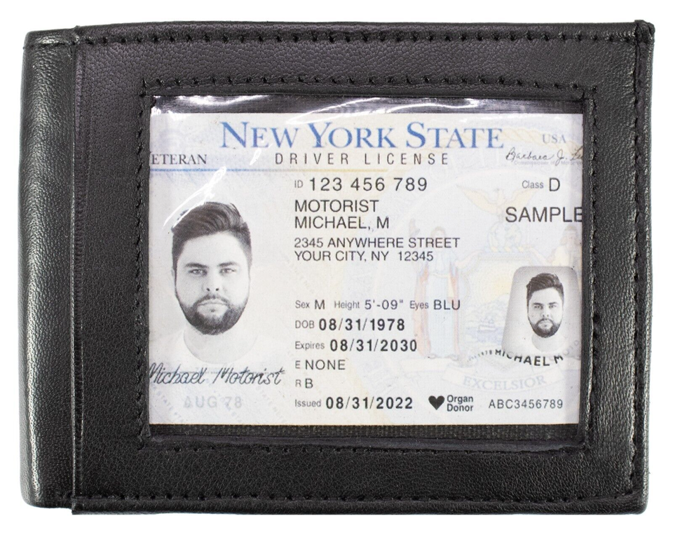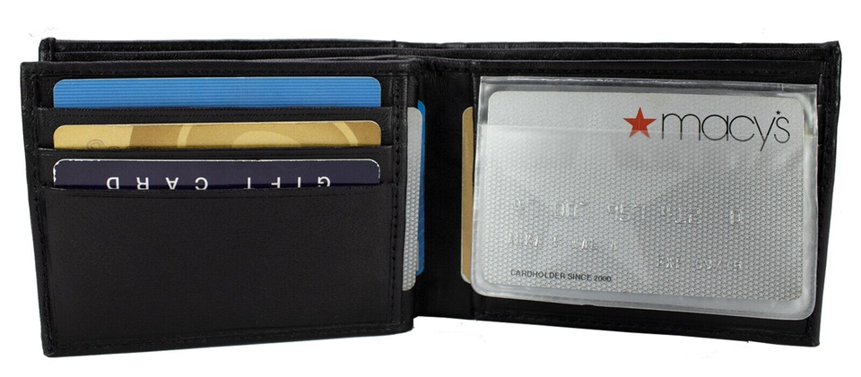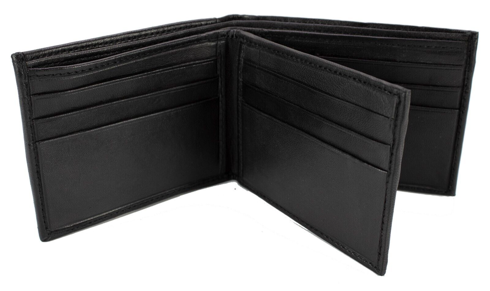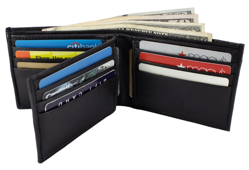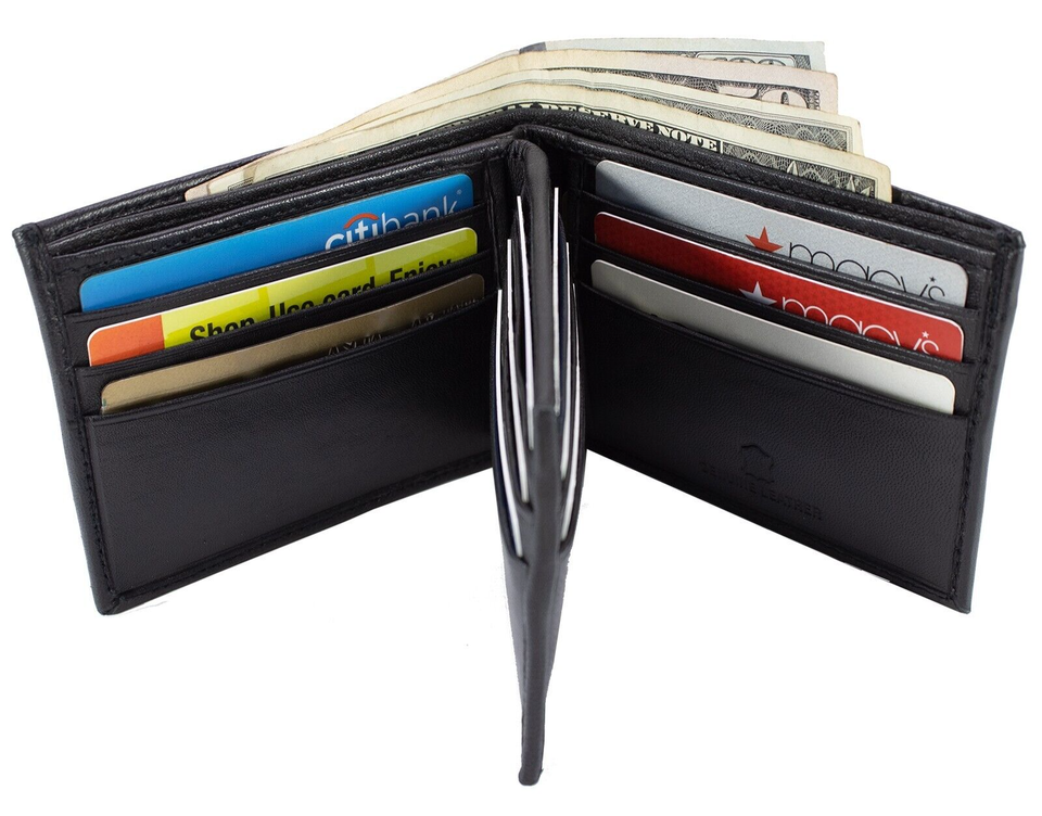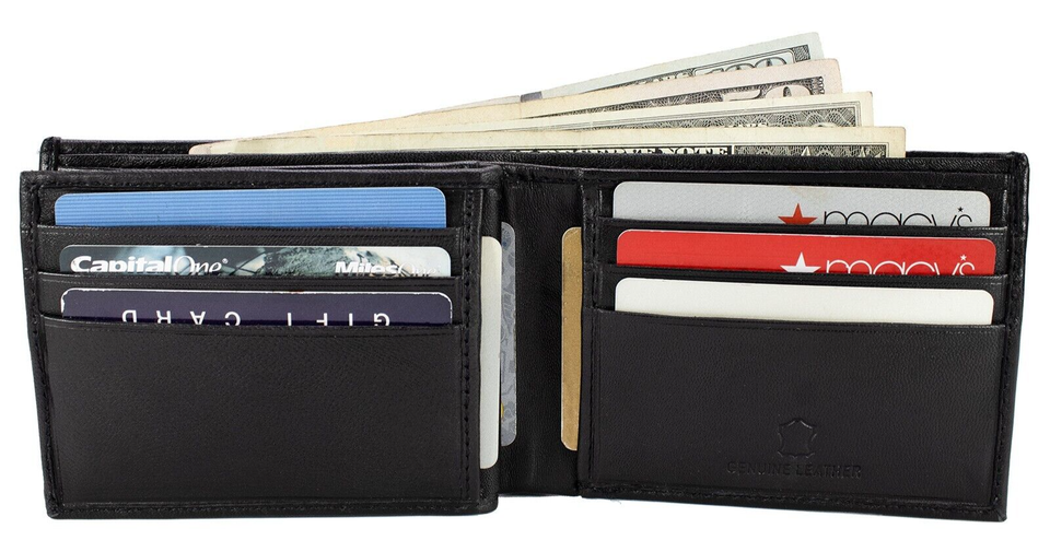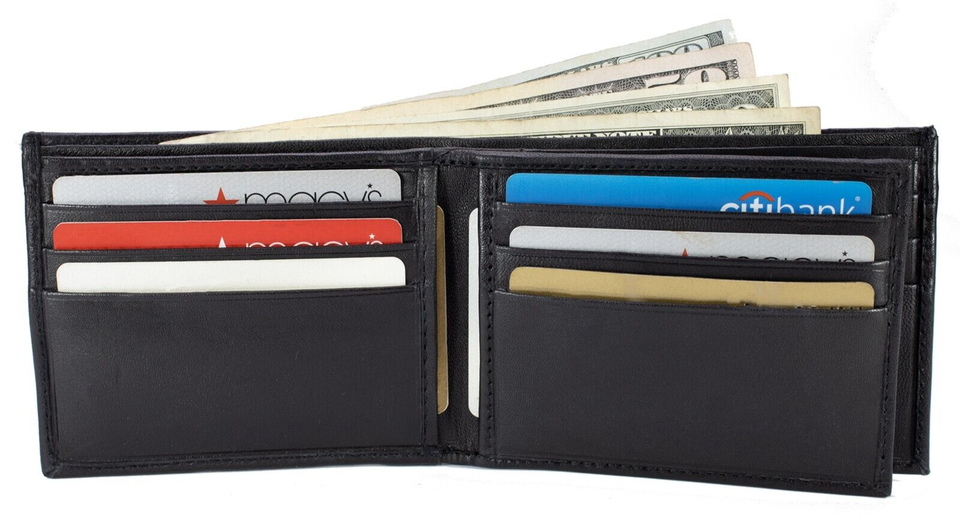 Mens Bifold Lambskin Leather Black Wallet Multi ID Pockets Classic Card Style