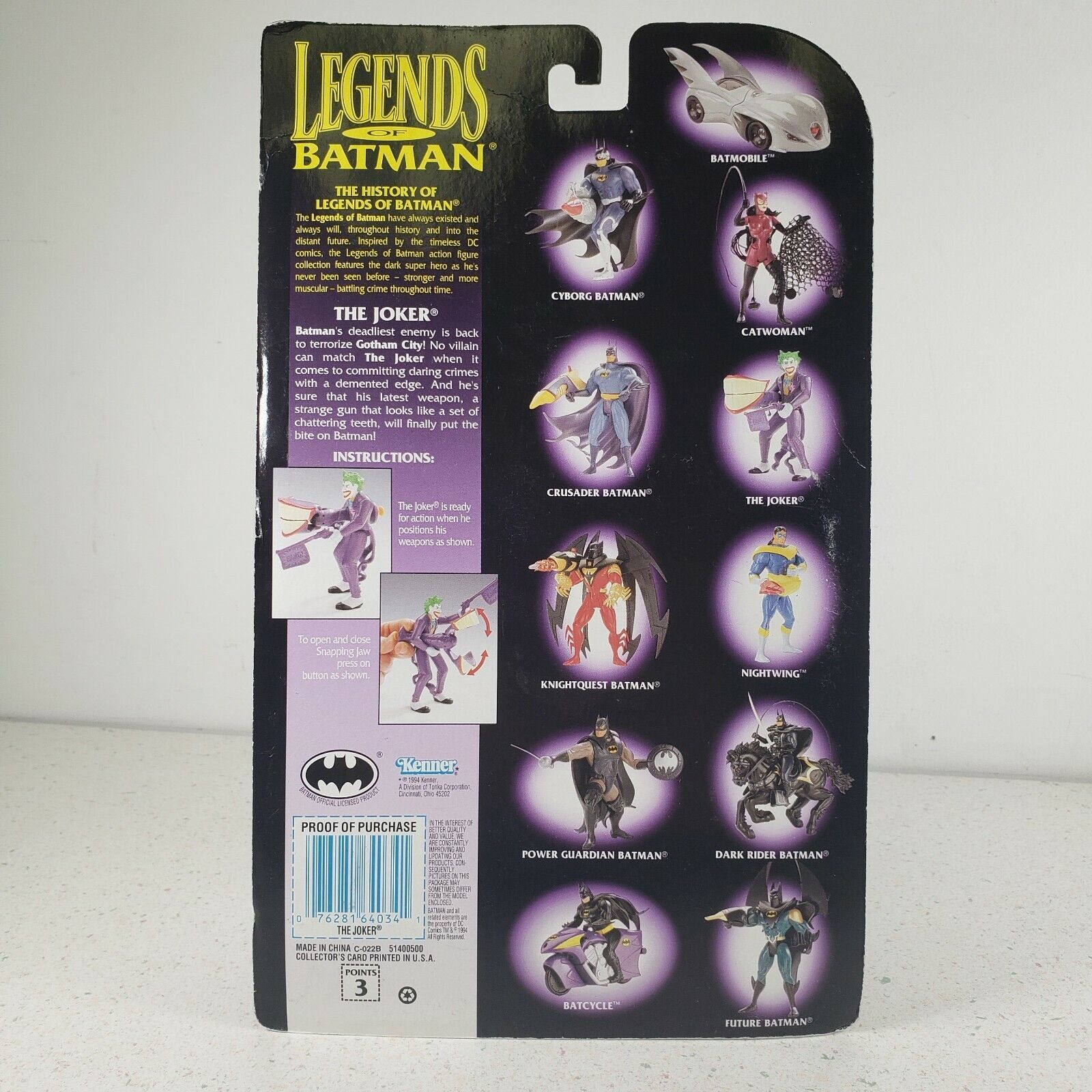 Legends of BATMAN THE JOKER Action Figure Snapping Jaw 1994 Kenner DC Comics VTG