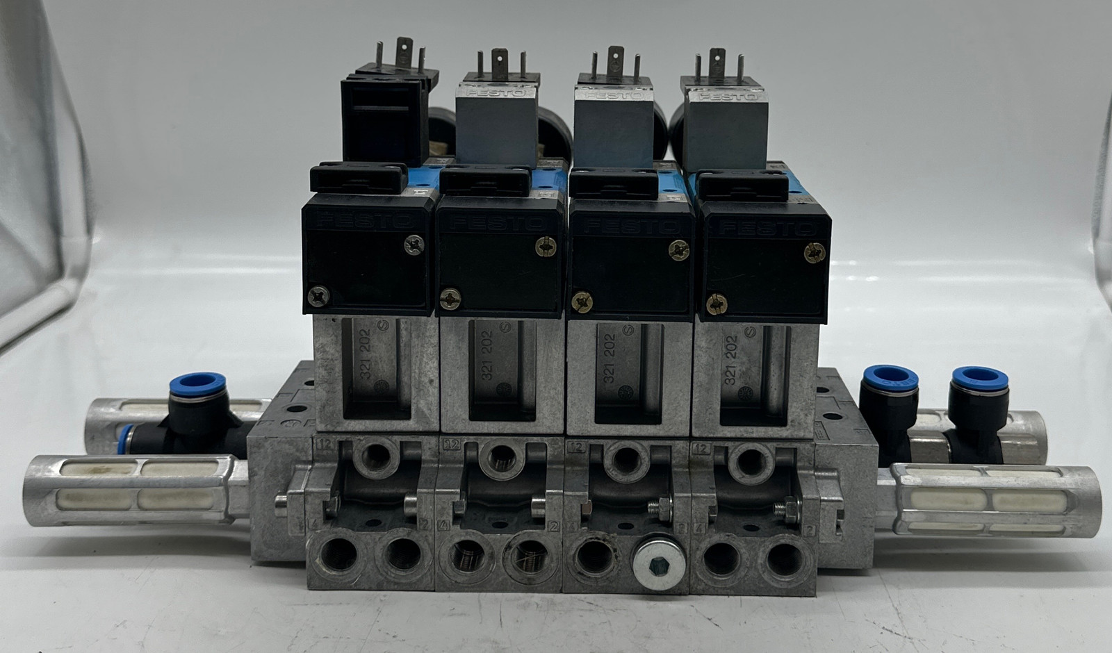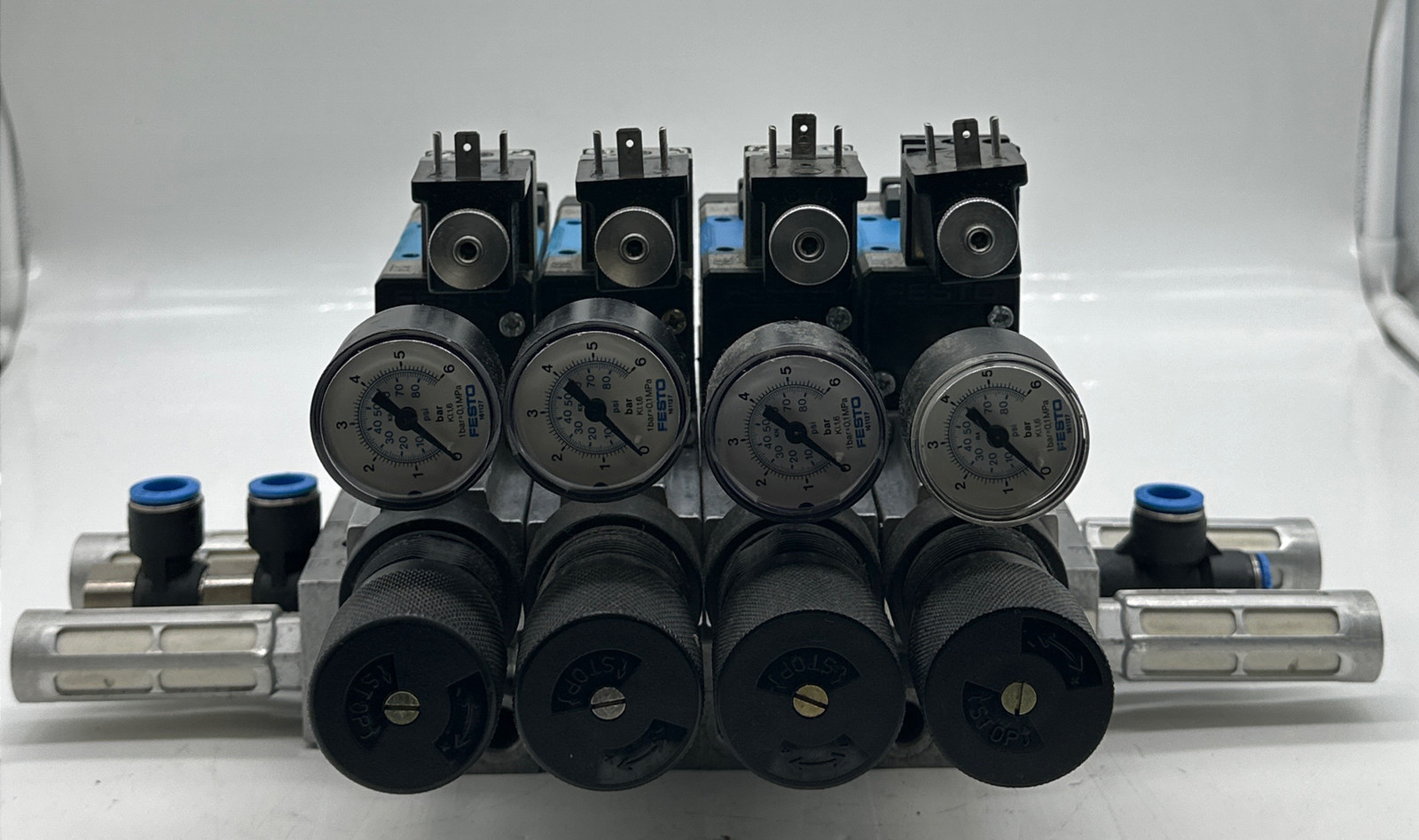 Festo MFH-5/2-D-1-FR C 4-Solenoid Valve Assy W/Pressure Regulator & Manifold