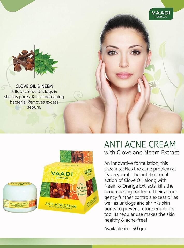 Vaadi Herbals Anti Acne Cream, Clove and Neem Extract, 30g (pack of 2)