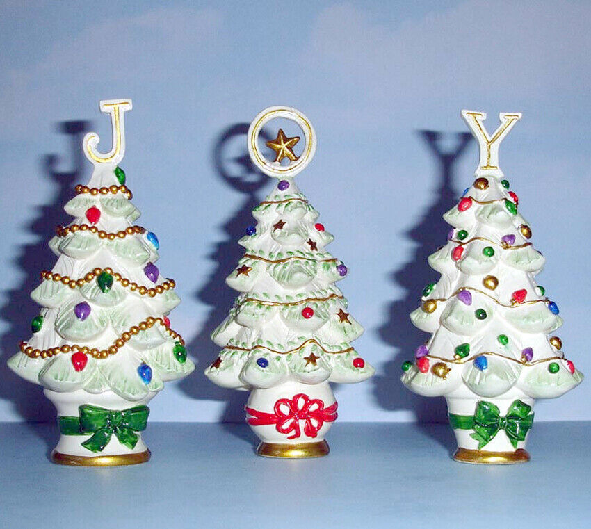 Lenox 3 PC. Christmas Tree Assortment Topped with Letters J-O-Y Handpainted New