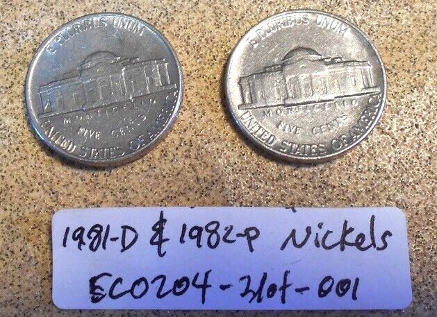 Lot: 1981 D & 1982 P Jefferson Nickels Fille Mint Mark Errors; Old Coin Money