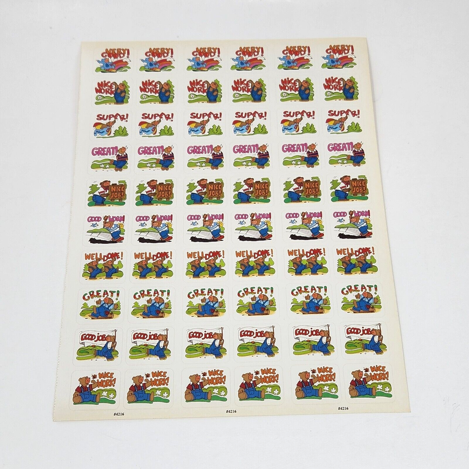 1 VINTAGE 1990's SHEET OF COLORFUL TEACHER STICKERS # 4216 MOTIVATION POSITIVE