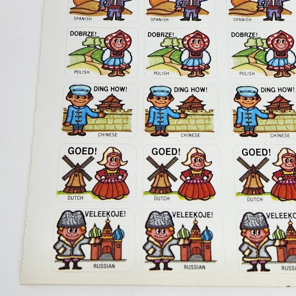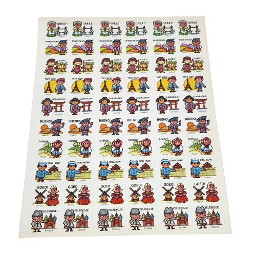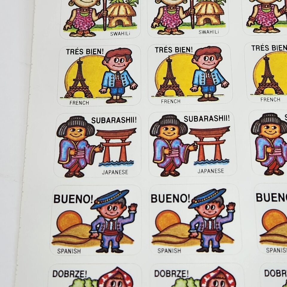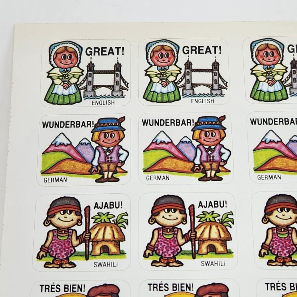 1 VINTAGE 1990's SHEET OF COLORFUL TEACHER STICKERS AROUND THE WORLD MOTIVATION