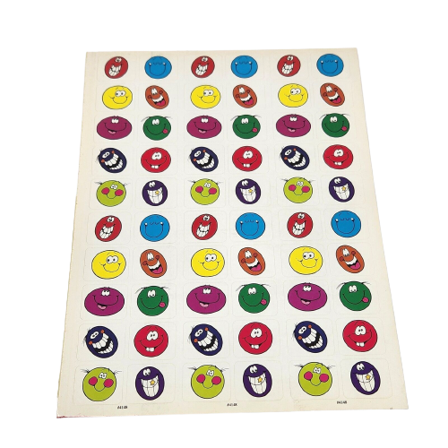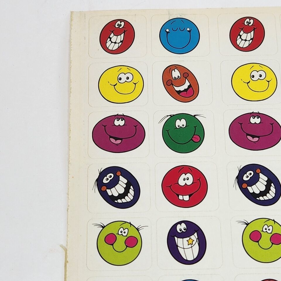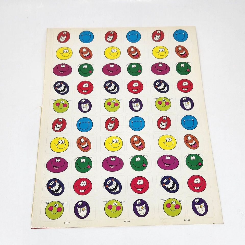 1 VINTAGE 1990's SHEET OF COLORFUL TEACHER STICKERS # 4148 COLORFUL SMILE FACES