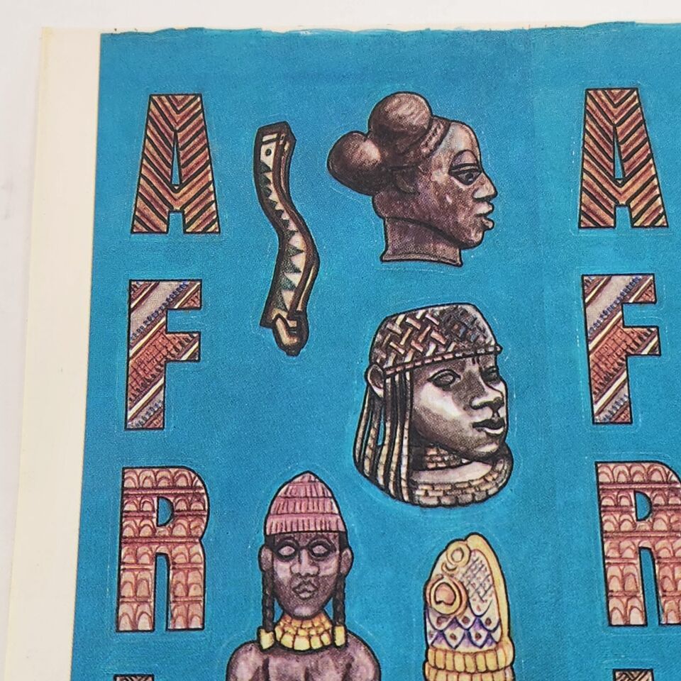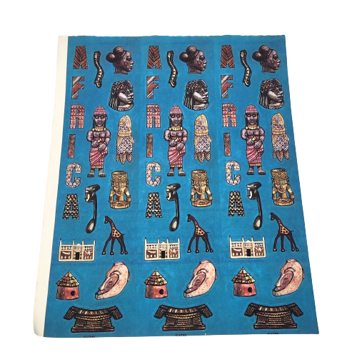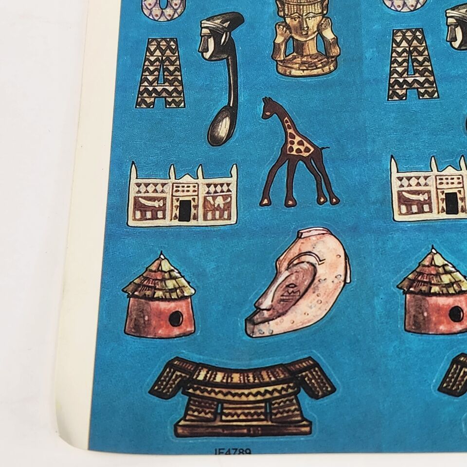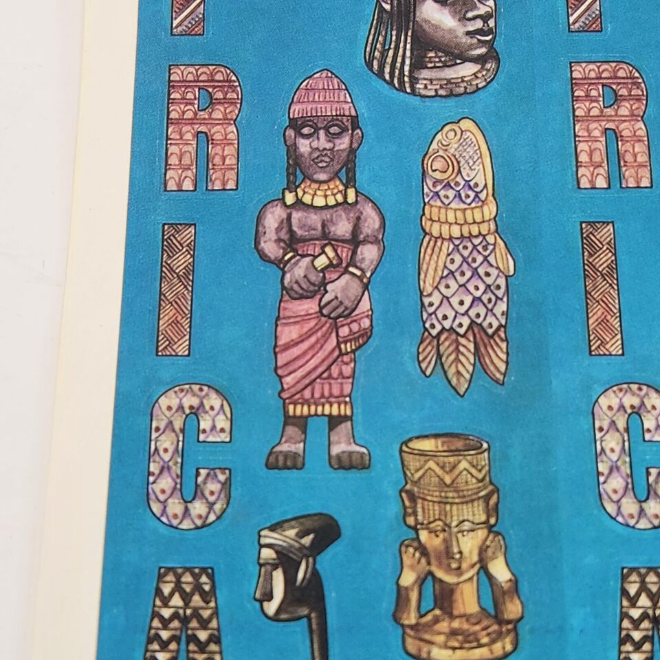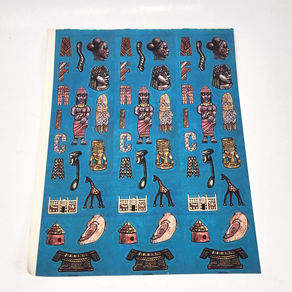 1 VINTAGE 1990's SHEET OF STICKERS COLORFUL AFRICAN HERITAGE ARTIFACTS HISTORY