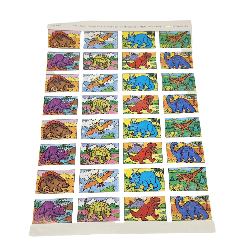 1 VINTAGE SHEET OF COLORFUL DINOSAUR DINO STICKERS T-REX BRONTOSAURUS
