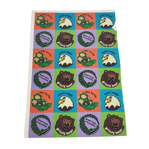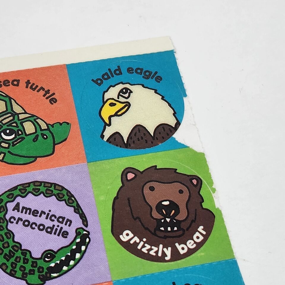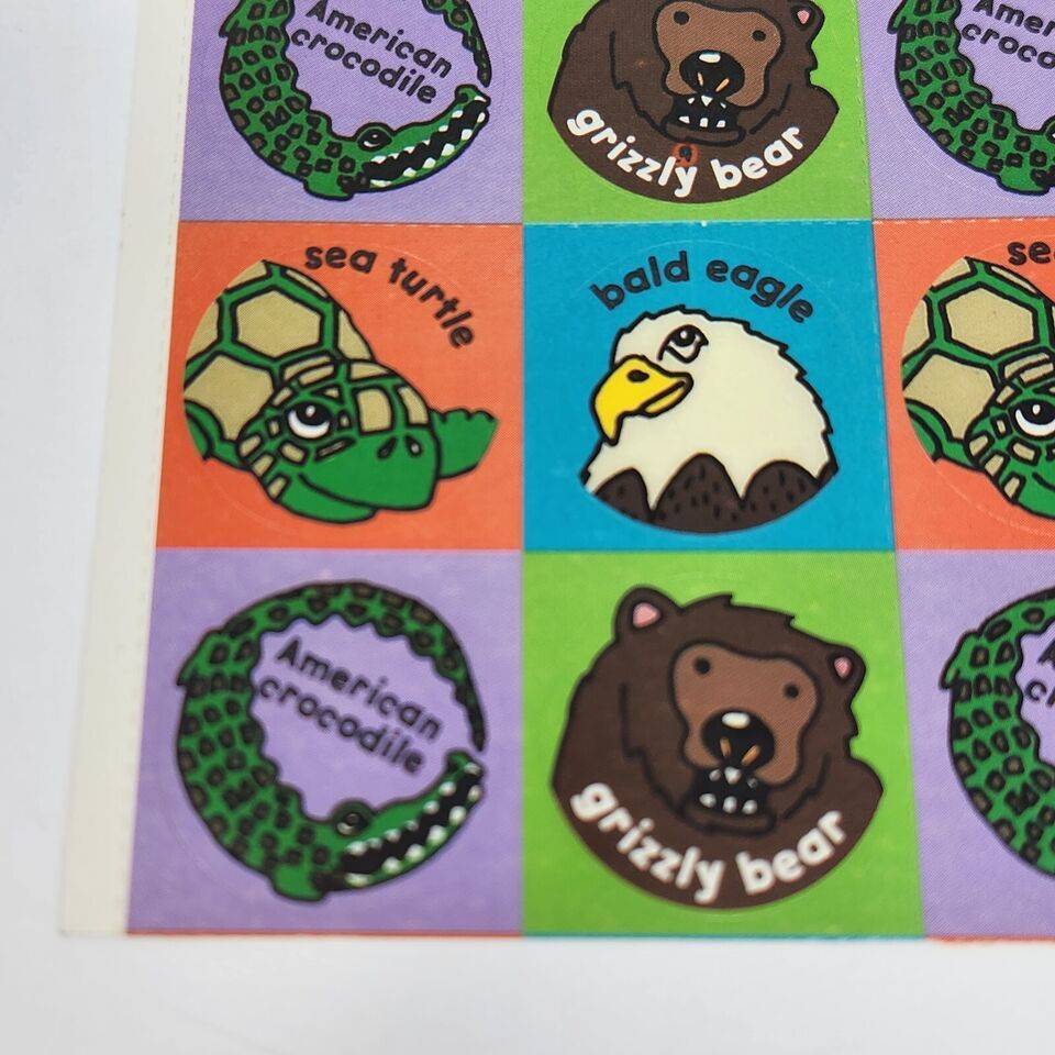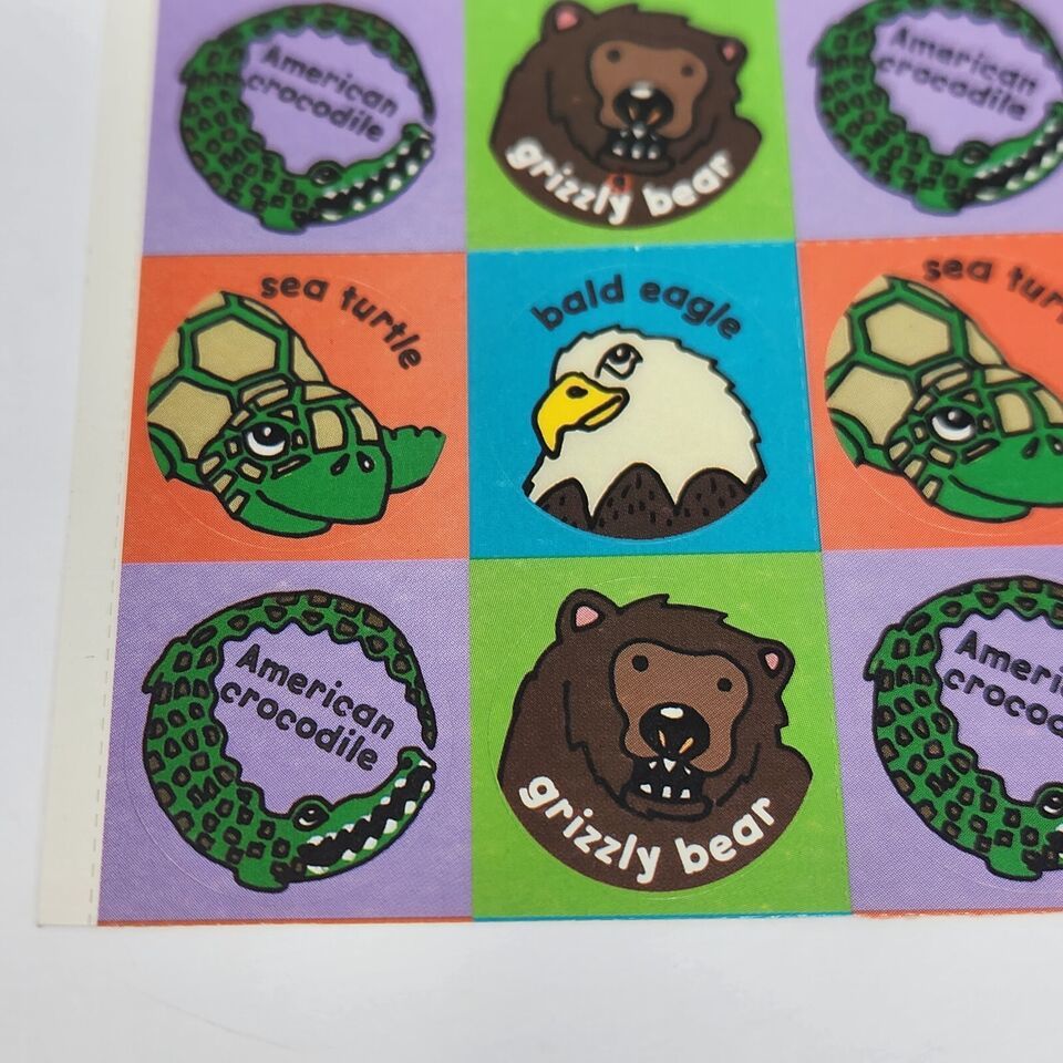 1 VINTAGE 1990's SHEET OF STICKERS SEA TURTLE BALD EAGLE GRIZZLY BEAR CROCODILE