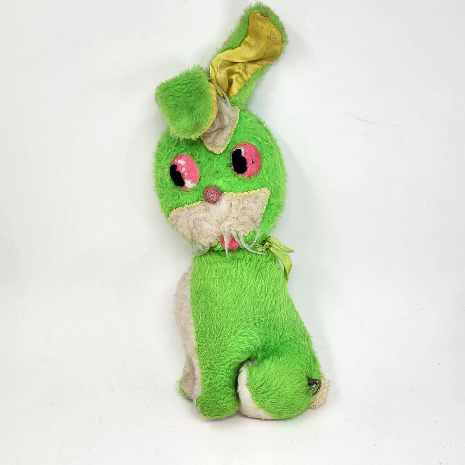 VINTAGE GREEN BUNNY RABBIT PINK EYES MUSICAL WIND UP STUFFED ANIMAL PLUSH TOY