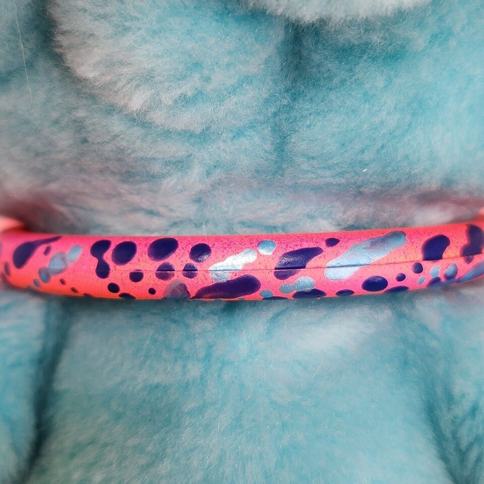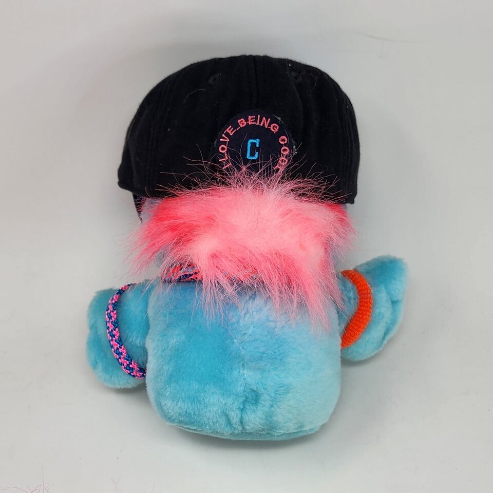 16" VINTAGE 1989 BLUE NEON TEDDY BEAR FUZZY PINK HAIR STUFFED ANIMAL PLUSH TOY