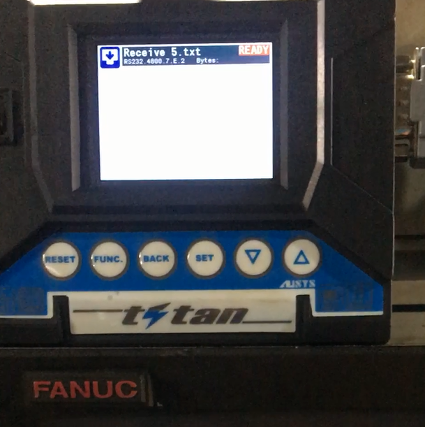 This is a Portable Program Transfer Device that transfers CNC machine programs from a standard USB flash drive (Thumb Drive, Pen Drive, memory stick?) to or from the CNC control through the RS232 communications port, also referred to as Drip feed DNC or Up-Loading Down-Loading. Extension of file name supports: *.?NC, *.TXT,*.NC, *tap