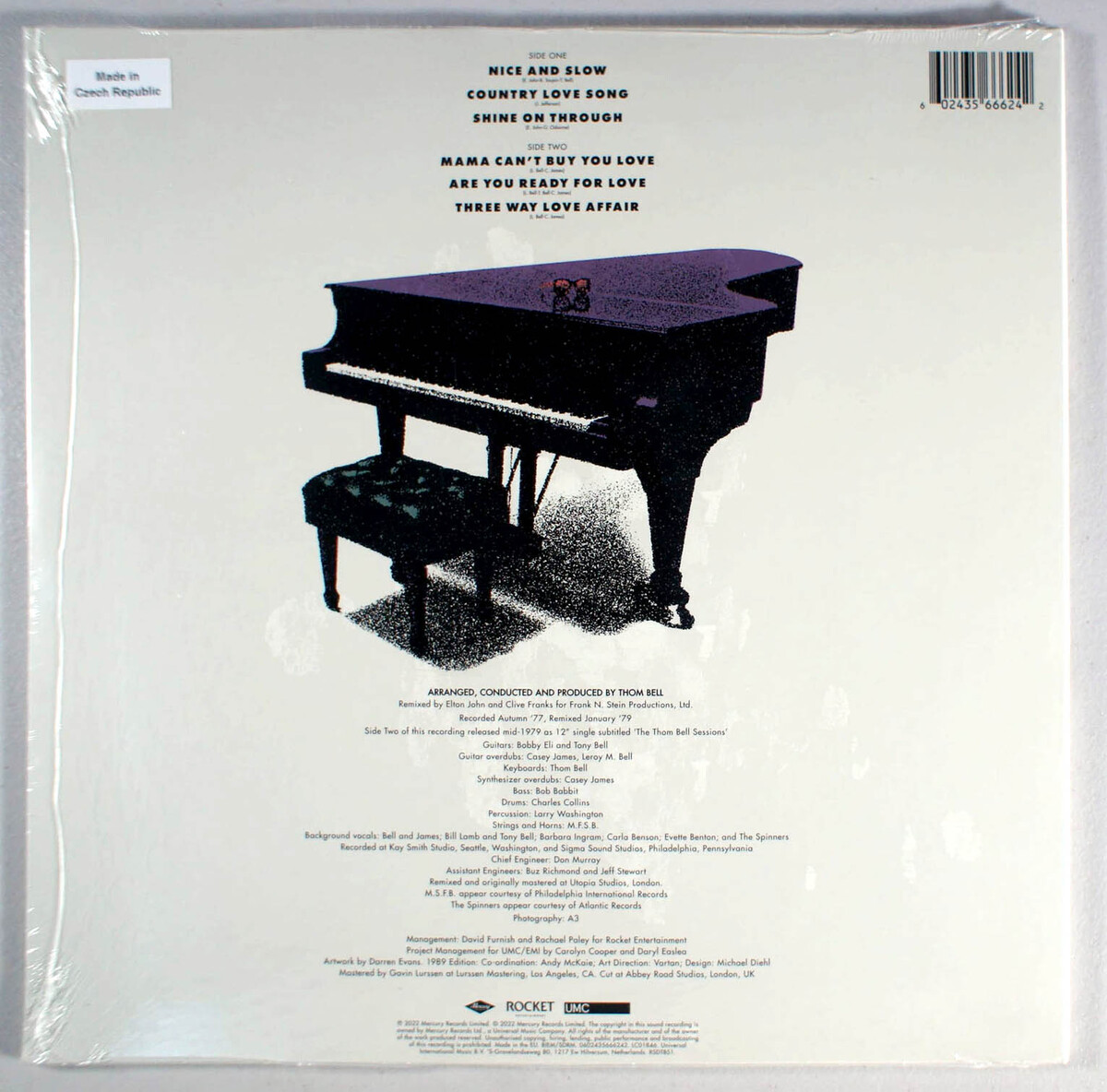 The Complete Thom Bell Sessions brings together the complete recording session by Elton John and producer Thom Bell onto one album. Released in 1989 by MCA Records, the album is composed of the material previously released in 1979 as well as the songs that were recorded at the original session but had then gone unreleased. Two of the "new" songs were co-written by John - Nice and Slow was co-written with Thom Bell and longtime writing partner Bernie Taupin, and Shine on Through with lyricist Gary Osborne. The mixes of Are You Ready for Love, Mama Can't Buy You Love and Three Way Love Affair are not the Elton and Clive Frank remixes from 1979, but the original 1977 Thom Bell mixes. Are You Ready for Love, for example, now includes Bobby Smith and John Edwards of The Spinners singing the second verse instead of Elton, among other more subtle differences. Are You Ready for Love was a minor hit in 1979 in many countries, while Mama Can't Buy You Love was certified Gold in the USA and reached No. 9 on the Billboard Hot 100. Are You Ready for Love was remixed in 2003 and became a No. 1 hit in the UK and on the US Dance Club Songs.
