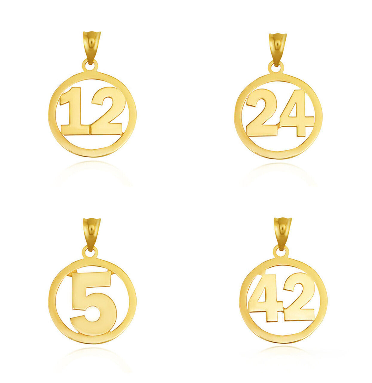 Yellow Gold Personalized Jersey Number Sports Circle Charm Pendant