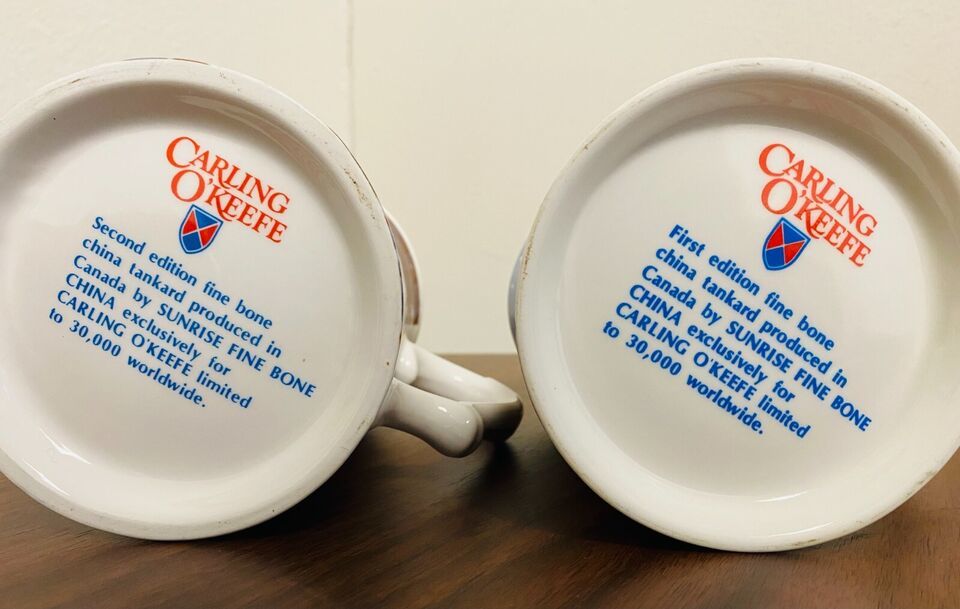 Carling O'Keefe Bone China Beer Tankard 2 DESIGNS (1970s/80s) Set
